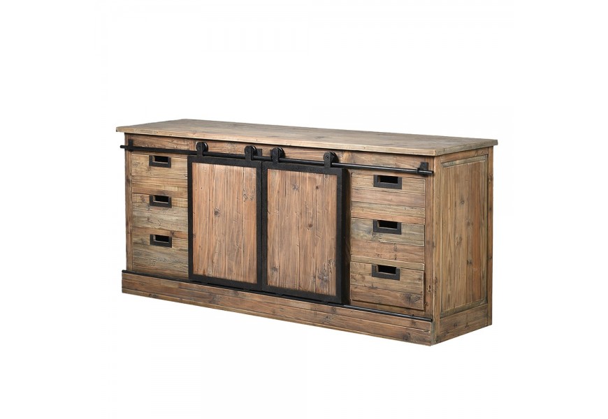 Industriálny príborník Impact hnedý so šiestimi zásuvkami a dvoma dvierkami na čiernej koľaji prevedenie dub 180cm