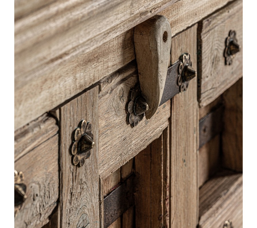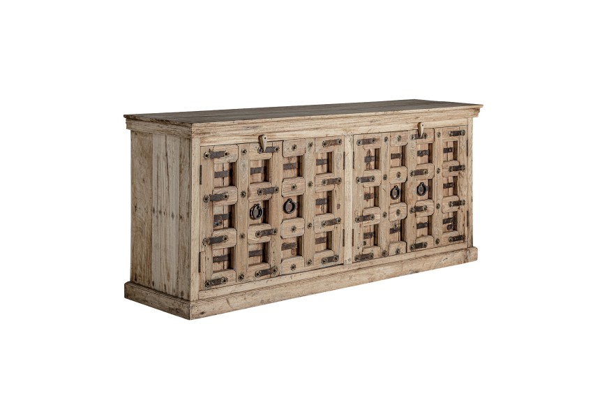 Etno vyrezávaný príborník Anatoli z mangového masívu hnedej farby s vyrezávaným zdobením 223cm