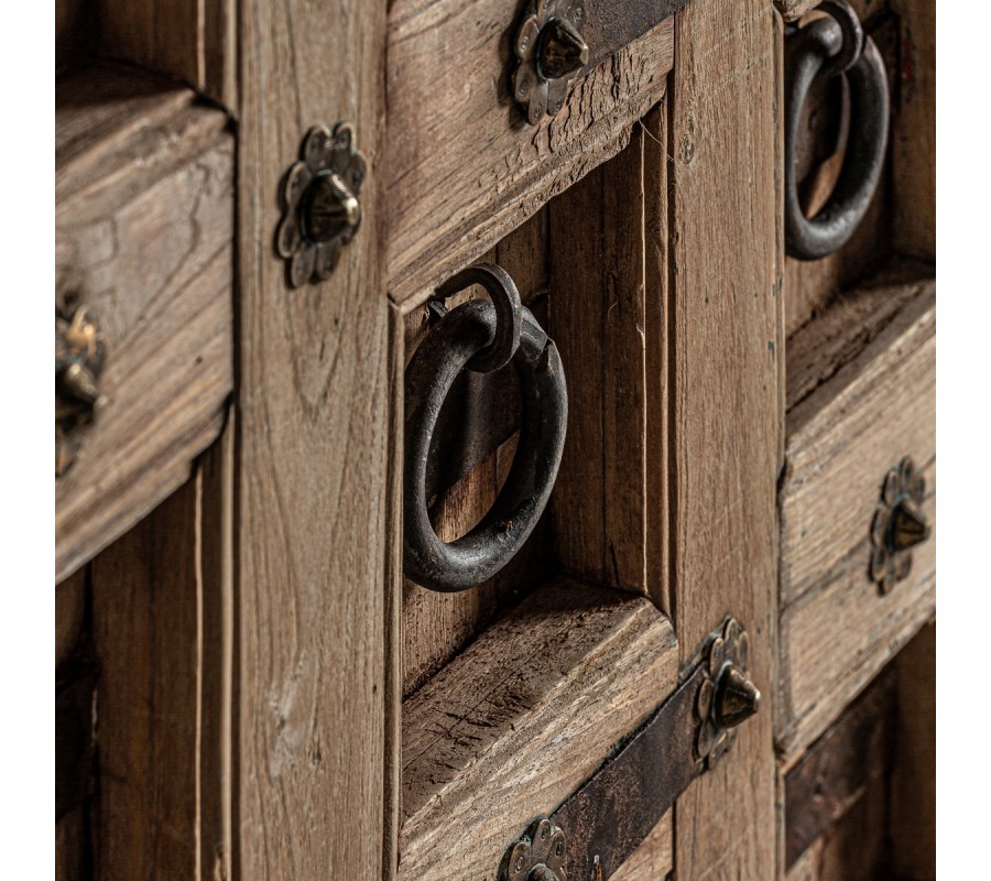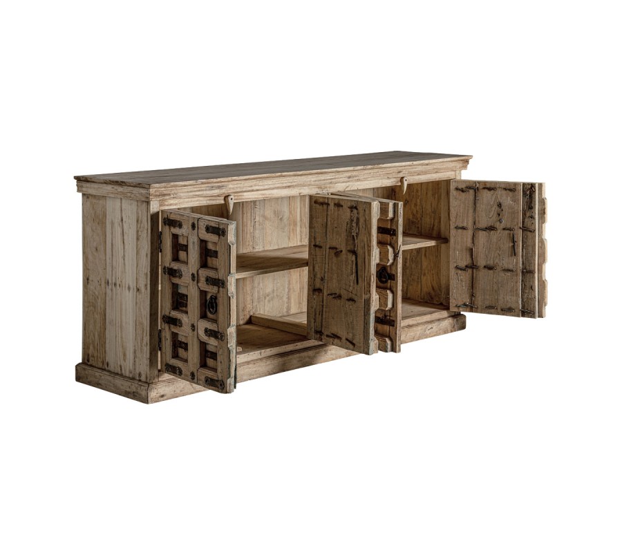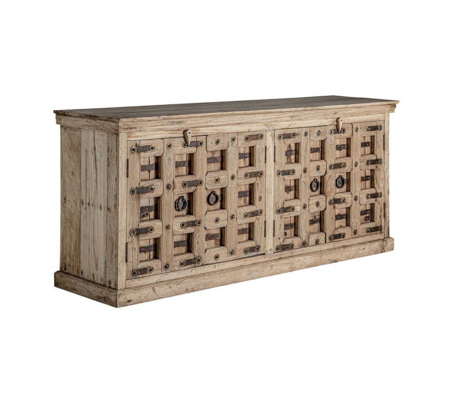 Jedinečné prevedenie príborníka Anatoli zaujme predovšetkým milovníkov etno štýlu. Vo svojom dizajne prepája kvalitný materiál mangového masívu s detailnou ručnou prácou, čím vzniká unikátny kúsok s osobitým autentickým nádychom. Príborník Anatoli sa nesie v prírodnej hnedej farbe, pričom nahrubo opracovaný povrch nechávajúci vyniknúť kresbu dreva tvorí nezameniteľný naturálny nádych. Ponúka úložný priestor v podobe priestranných poličiek so štyrmi dvierkami, kde poľahky uskladníte vaše kuchynské a jedálenské potreby. Štvorica dvierok je zdobená zaujímavým vyrezávaním a kovovými ozdobnými aplikáciami dotvárajúcimi starožitný vzľad. Príborník Anatoli je tak nielen praktickým, ale aj esteticky zaujímavým kúskom vhodným na doplnenie etno či vidiecky ladených obývačiek a jedální. Vynikne najmä v svetlejších priestoroch v kombinácii s ďalším masívnym nábytkom a inými kúskami z prírodných materiálov.