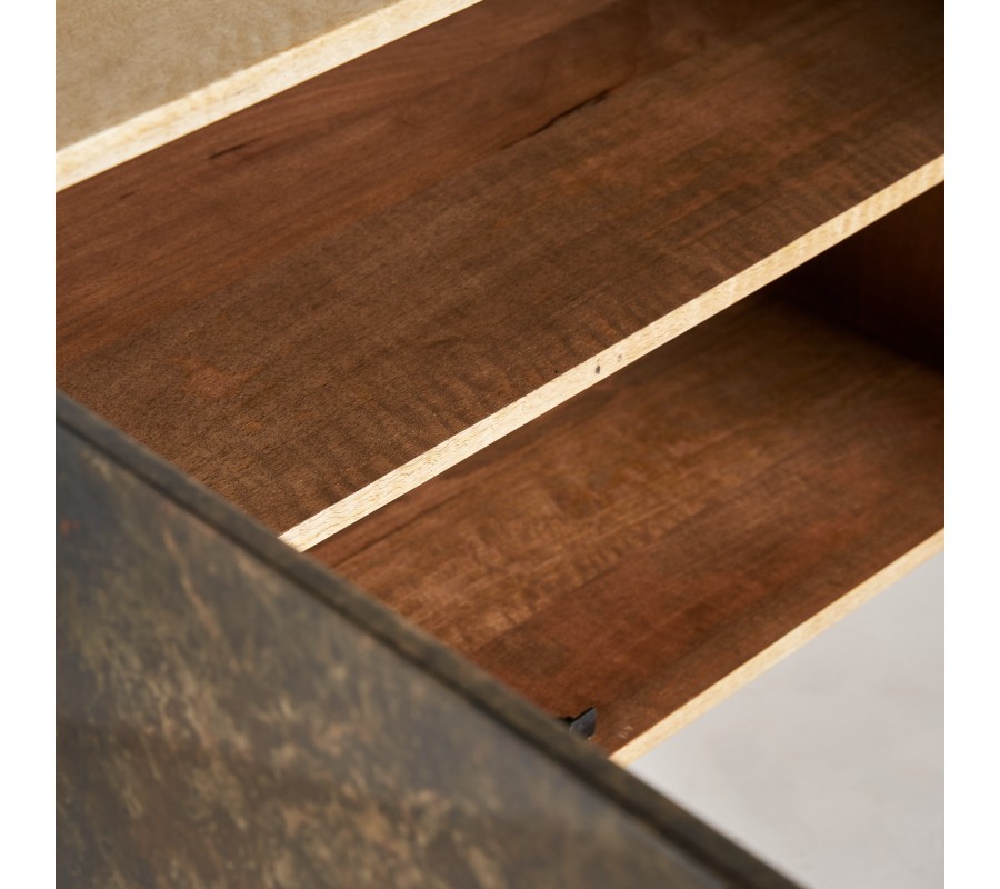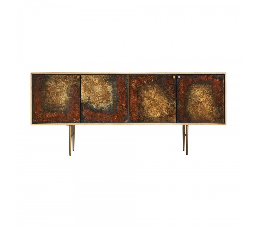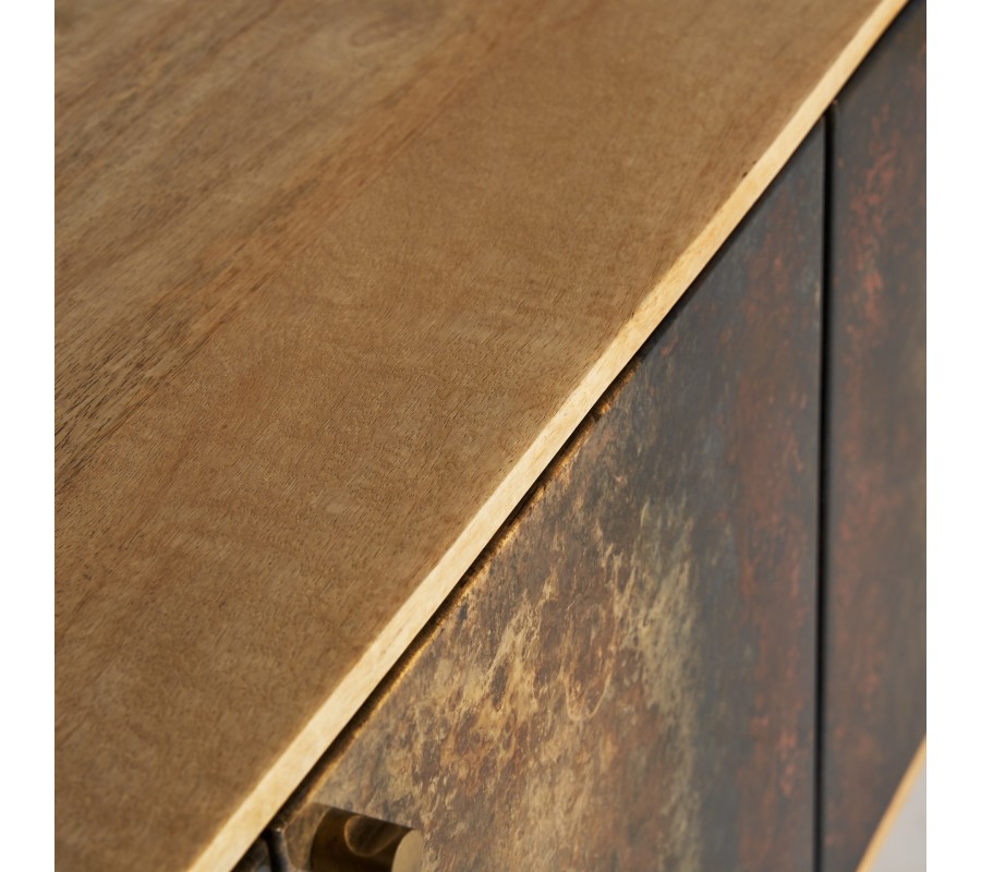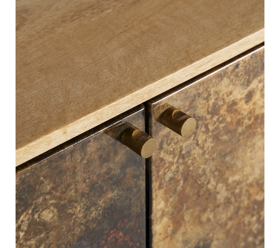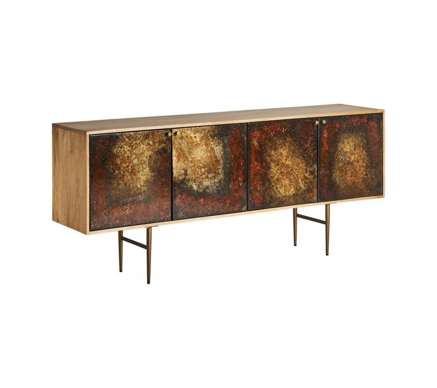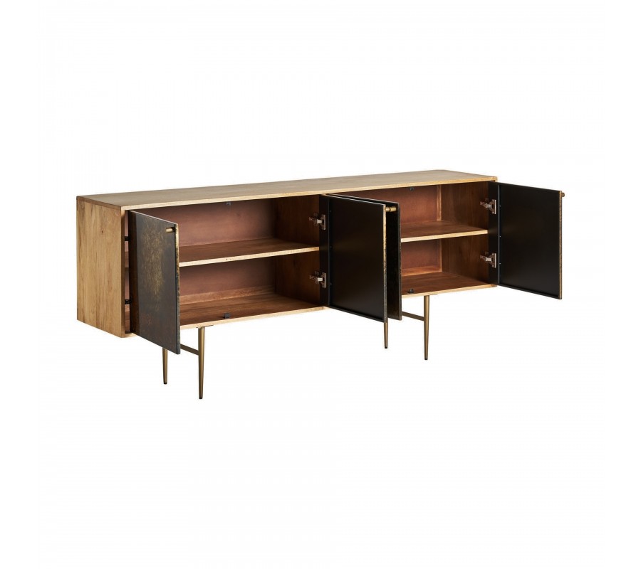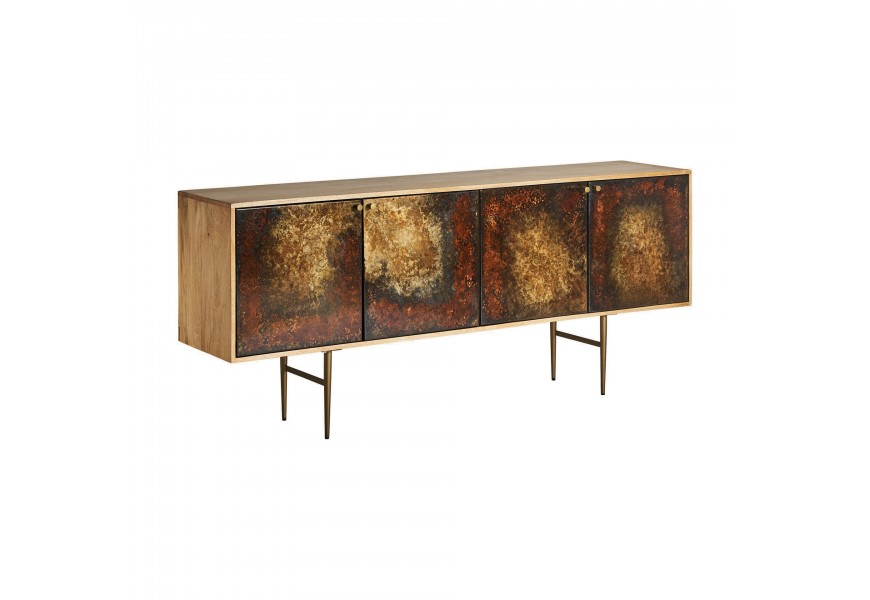 Art-deco luxusný príborník Canea z mangového masívu v naturálnej hnedej farbe so štyrmi vzorovanými dvierkami 184cm