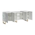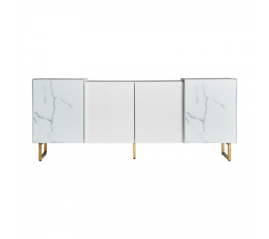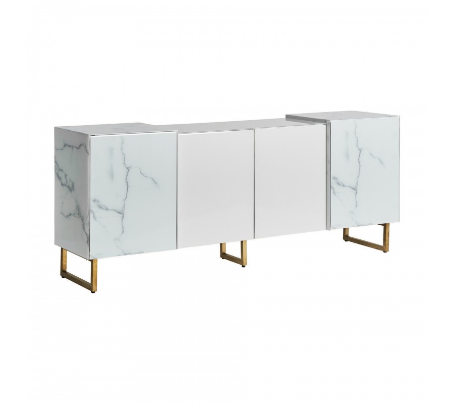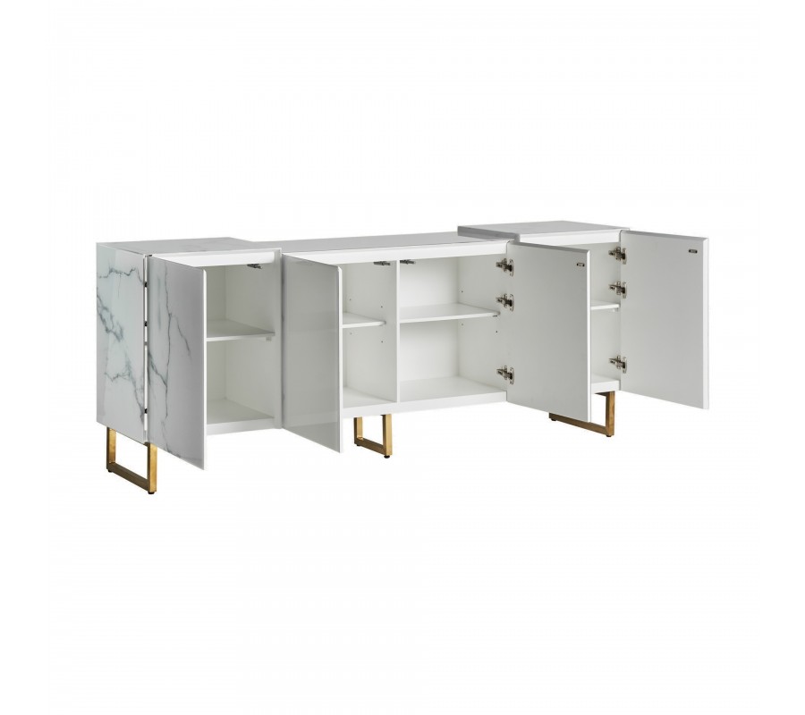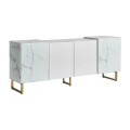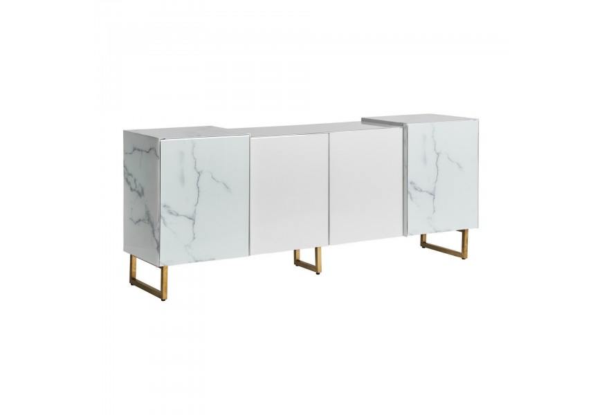 Moderný luxusný príborník Neva Marble v prevedení biely mramor so štyrmi dvierkami a nožičkami v zlatej farbe 200cm