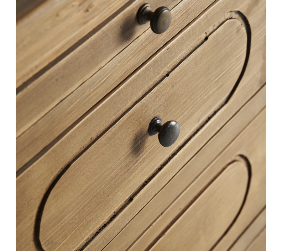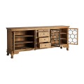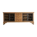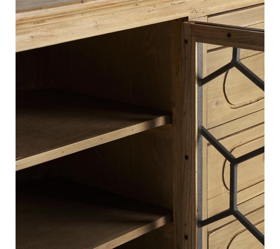 Vidiecky masívny príborník Lavia Pine so štyrmi čiernymi kovovými dvierkami a štyrmi zásuvkami hnedý 219cm