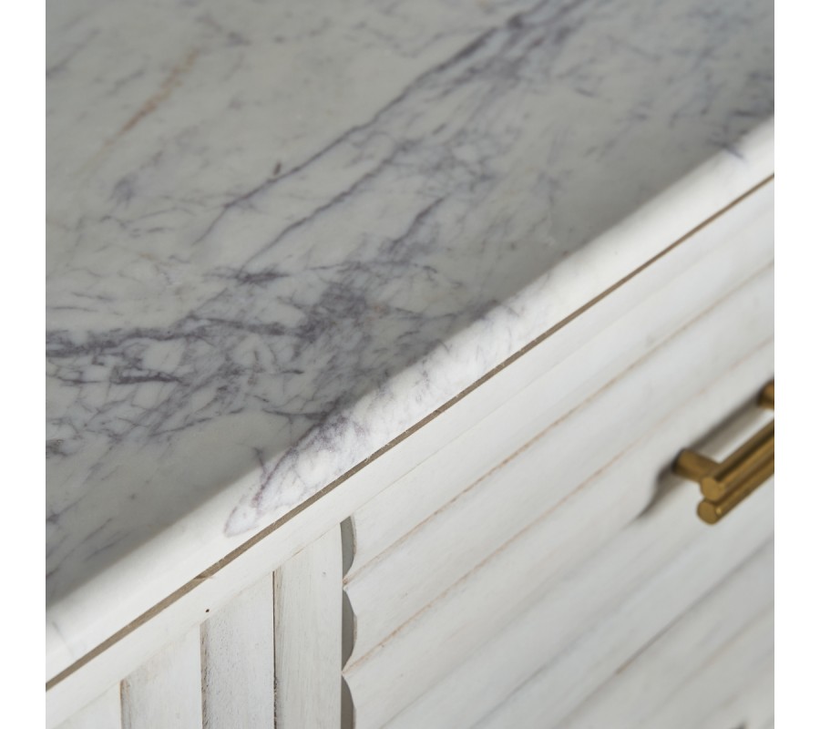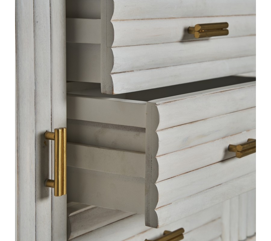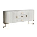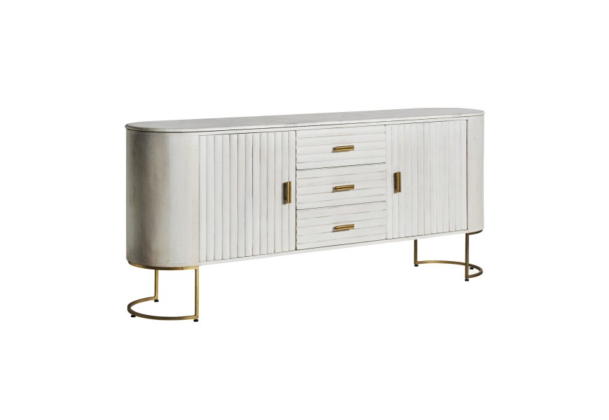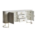Art deco glamour biely príborník Sedge s tromi zásuvkami a dvierkami so zlatým zdobením 200cm