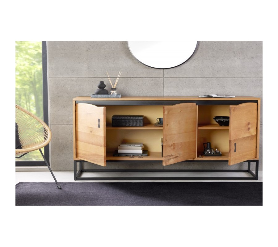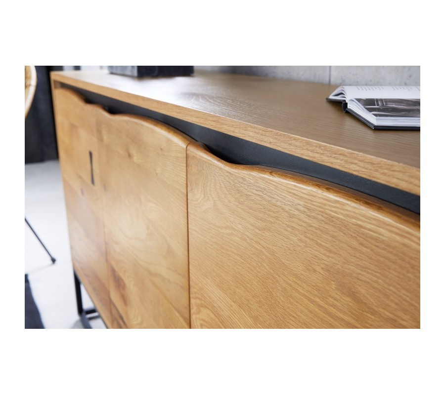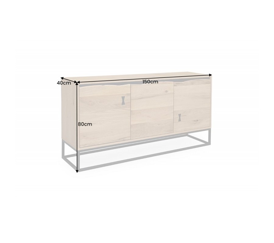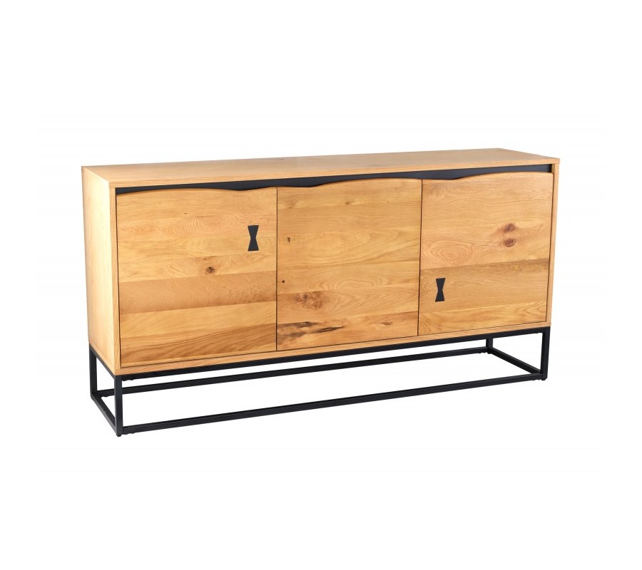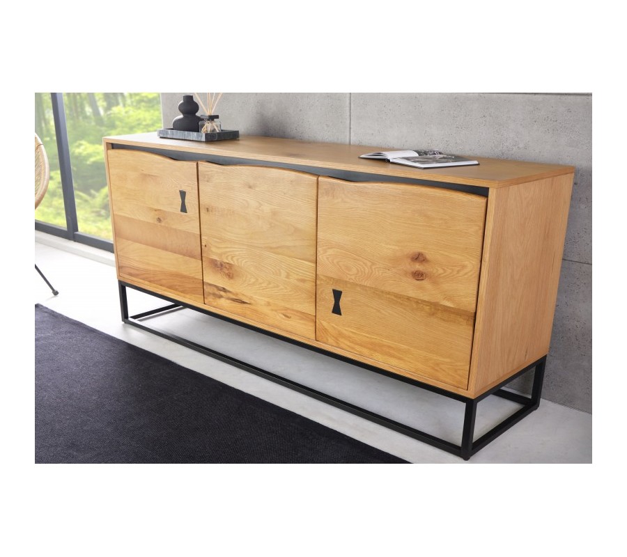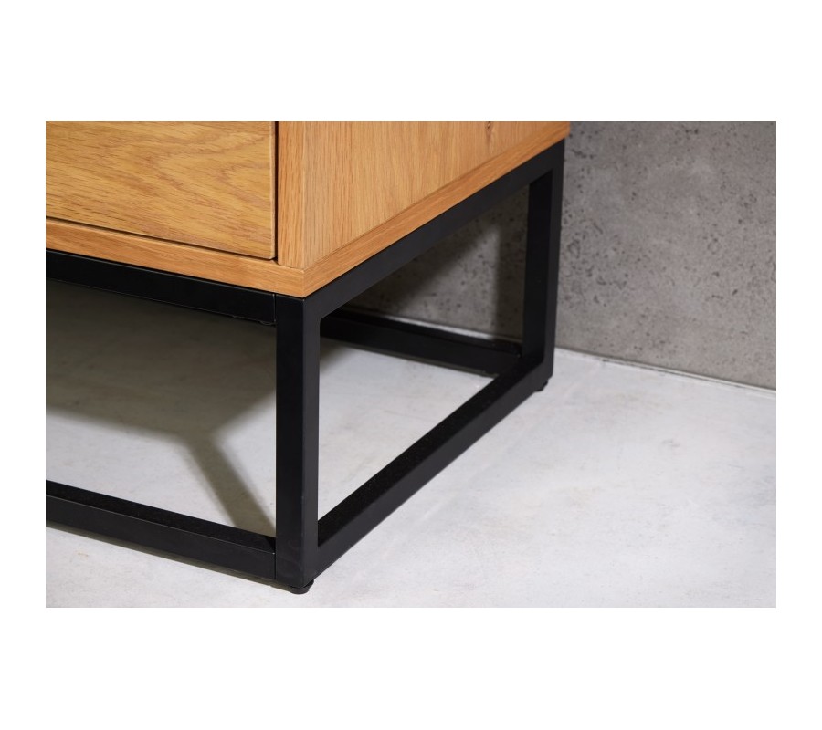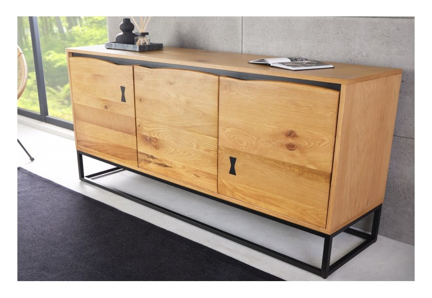 Masívny príborník Mammut v industriálnom štýle na čiernej kovovej konštrukcii s dubovým vzhľadom 150cm