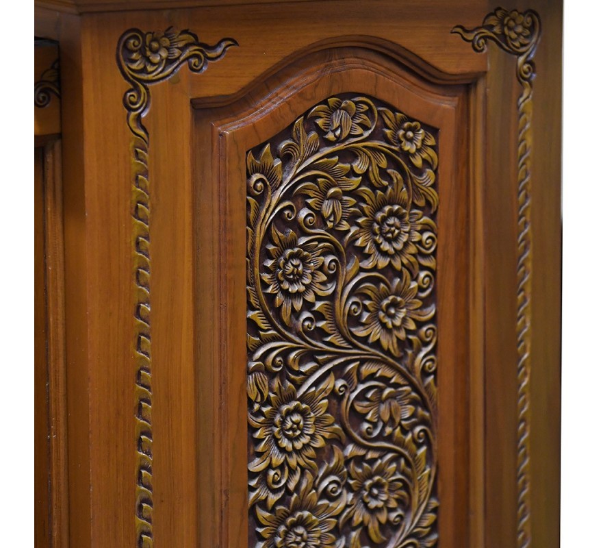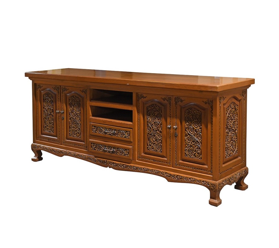 Orientálny masívny príborník Jullien s uzavretým úložným priestorom s vyrezávaním v tmavohnedej farbe 200cm
