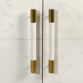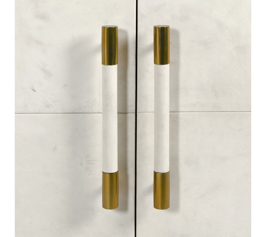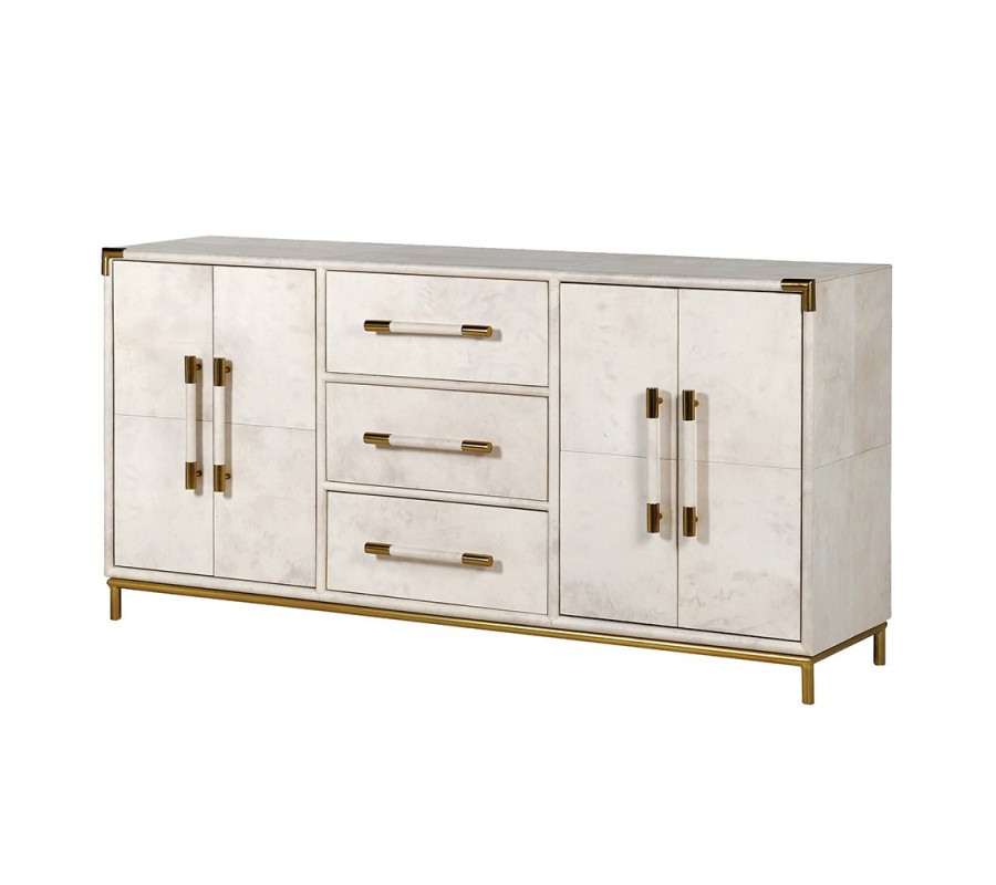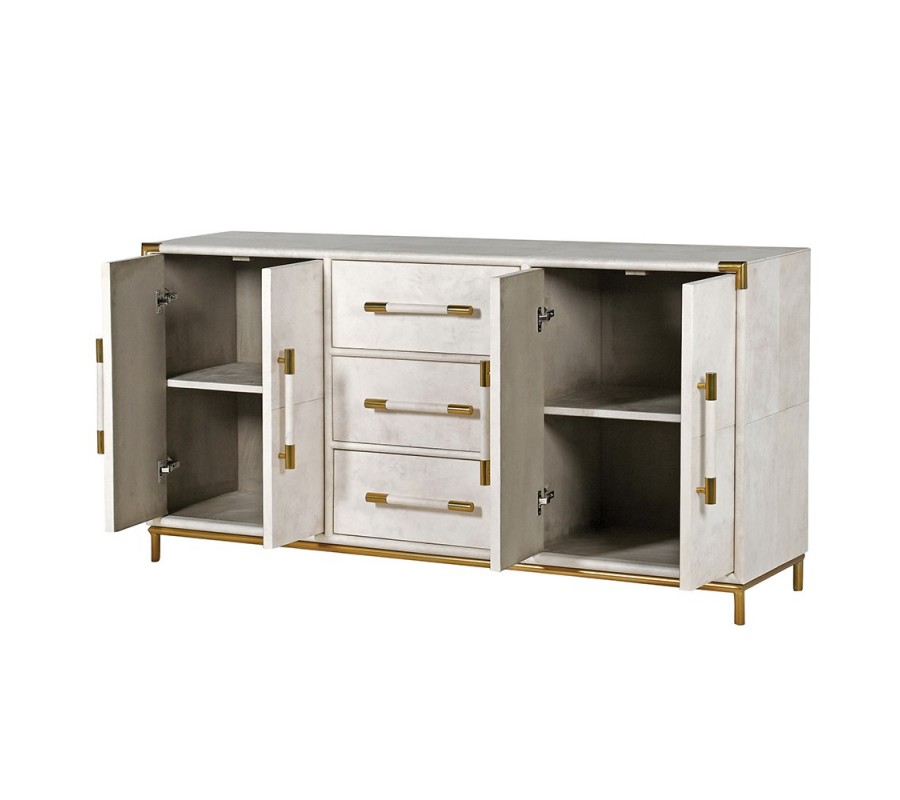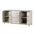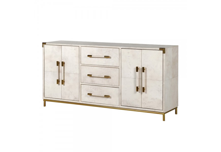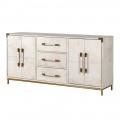 Luxusný príborník Pellia Marble s koženým bielym poťahom a zlatou konštrukciou 176cm