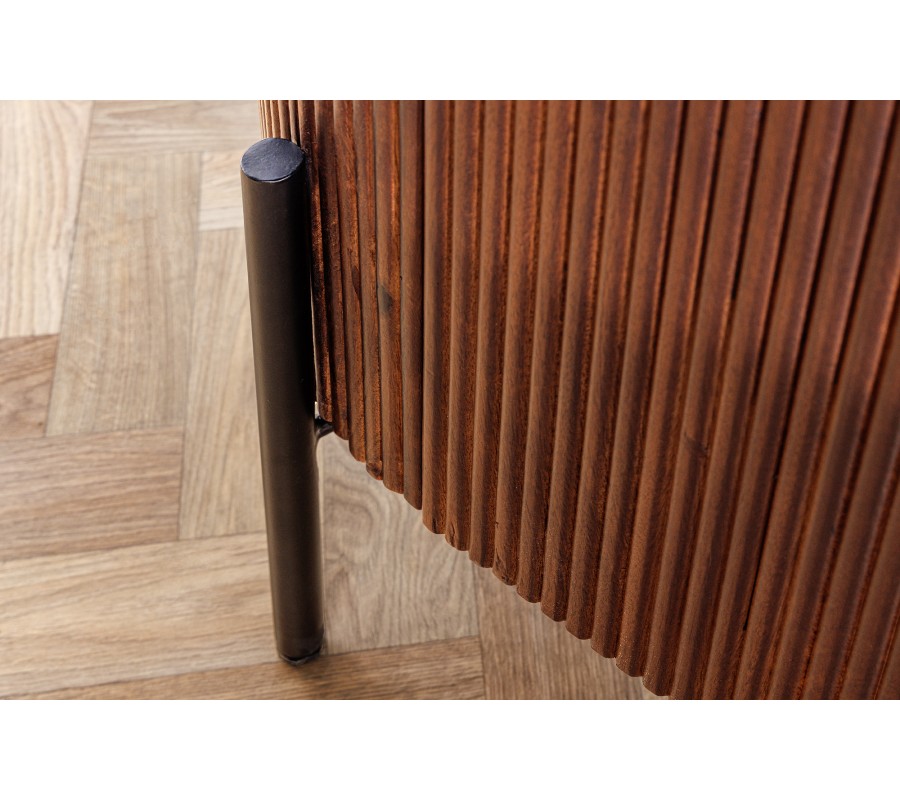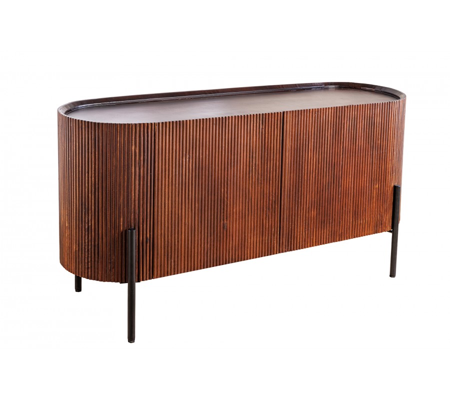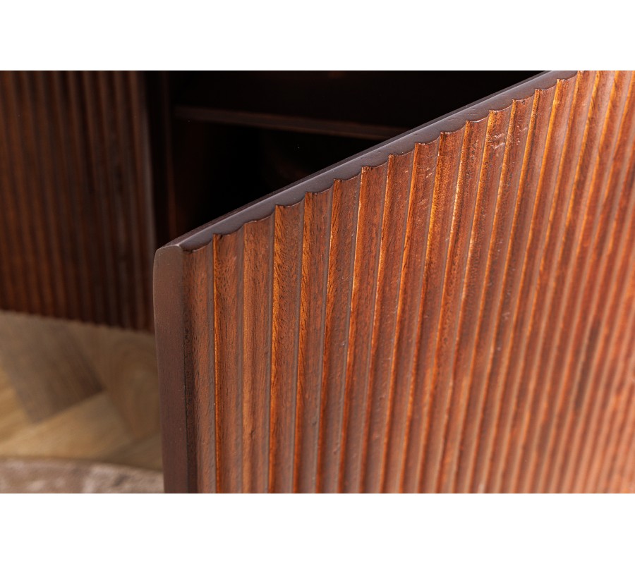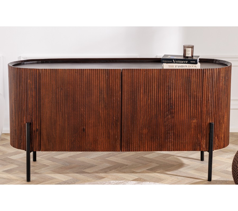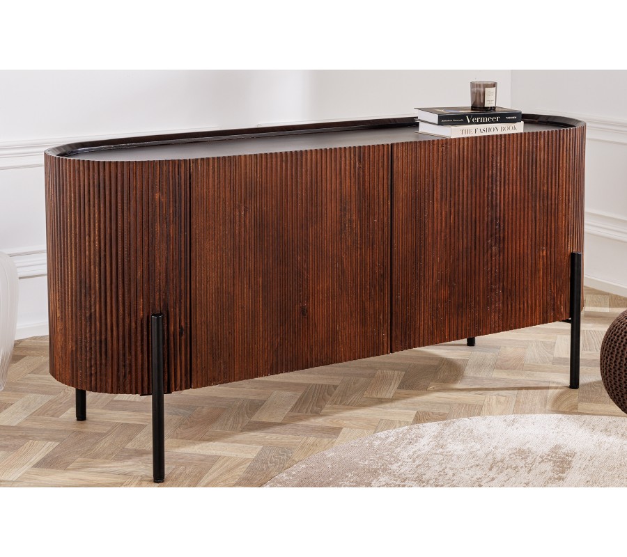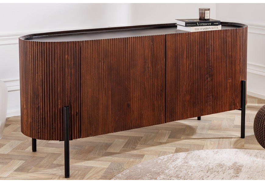 Luxusný oválny retro príborník Gatsby s drážkovaným reliéfom z mangového dreva hnedý 150 cm