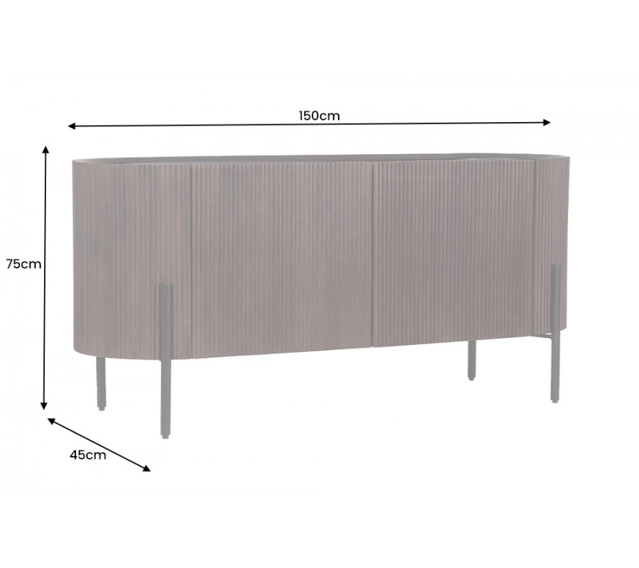 Luxusný príborník Gatsby je na prvý pohľad výnimočný svojím originálnym oválnym tvarom. Dizajnovo mu dominujú dvierka na pántoch s drážkovaným reliéfom, ktoré mu dodávajú retro vzhľad. Poskytuje uzatvorený úložný priestor predelený na štyri časti, každá s rozmerom 51x23x40 cm. Hodí sa do jedálne v retro štýle, kde ho môžete doplniť stoličkami alebo lavicou so zamatovým čalúnením alebo textíliami s výraznými vzormi. Nič nepokazíte ani geometrickými vzormi prepojenými s reliéfom na dvierkach. Vašej miestnosti tak dodáte honosný luxus štýlu art-deco, ktorý môžete ešte zvýrazniť zlatými doplnkami. Pokiaľ chcete, aby hlavnú úlohu hralo krásne exotické mangové drevo, príborník najlepšie vynikne v miestnosti so svetlými neutrálnymi tónmi. Dlhé kovové nožičky sú v matnej čiernej farbe. Prostredníctvom toho môžete príborník prepojiť s ďalším nábytkom s kovovými prvkami a spraviť z neho výrazný dizajnový prvok v industriálnom priestore. K prírodnému drevu sa hodia zelené rastliny, Táto kombinácia oživí vašu jedáleň naturálnymi prvkami. Príborník tiež využijete ako úložný priestor v obývačke alebo pracovni.