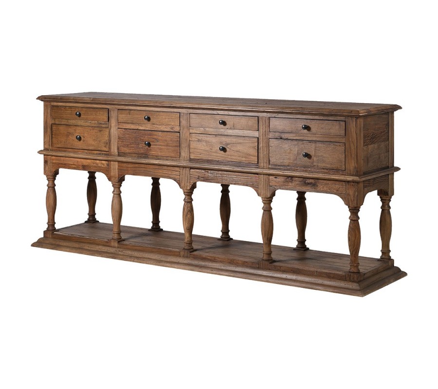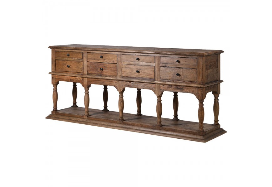 Luxusný rustikálny príborník Galieto z masívneho borovicového dreva s ôsmimi zásuvkami 196cm