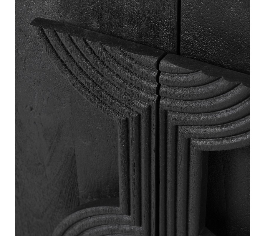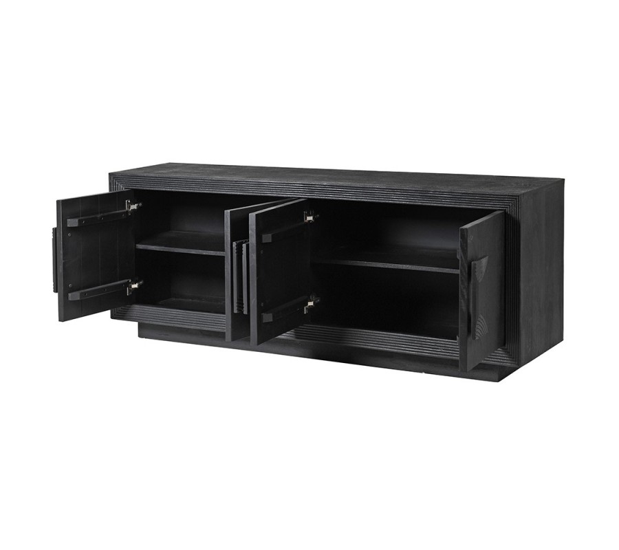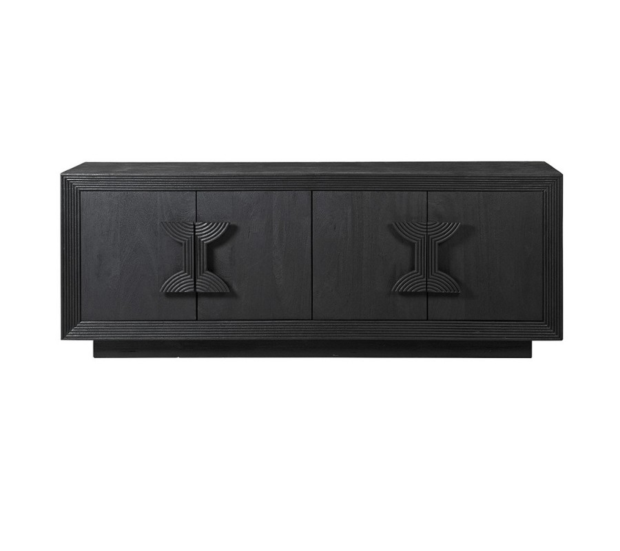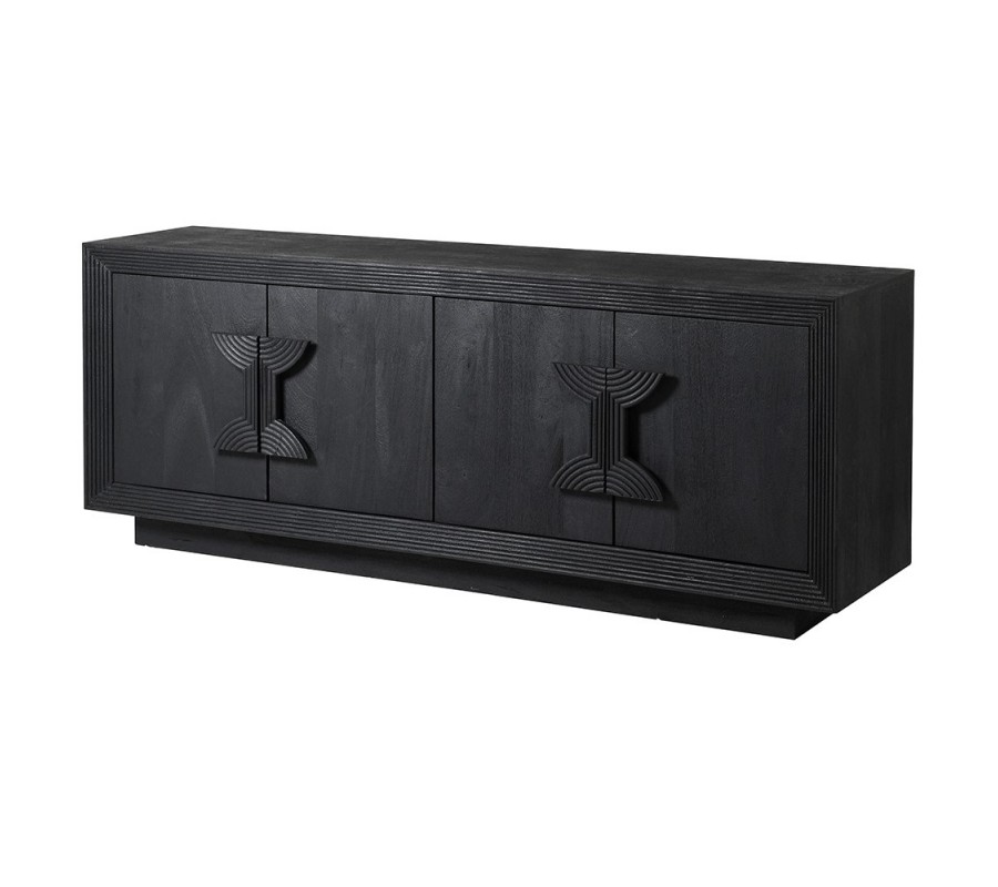 Luxusný štvordverový príborník Kamas z čierneho masívneho mangového dreva v tmavej farbe s dizajnovými rúčkami 178cm