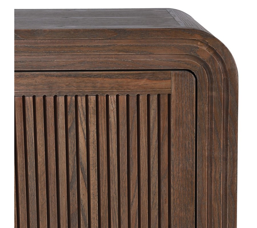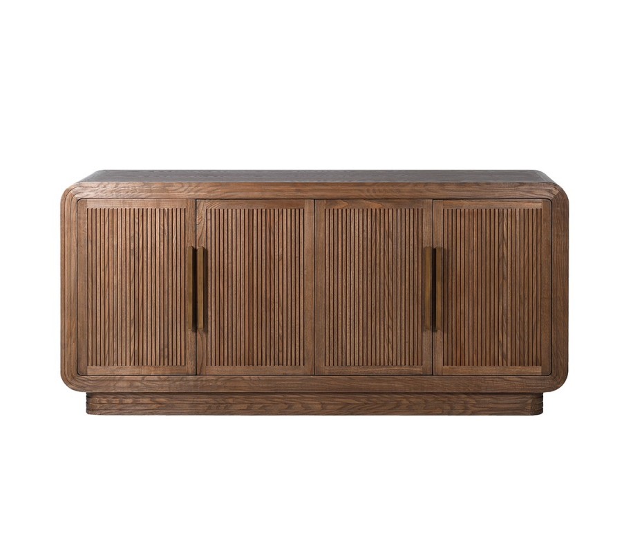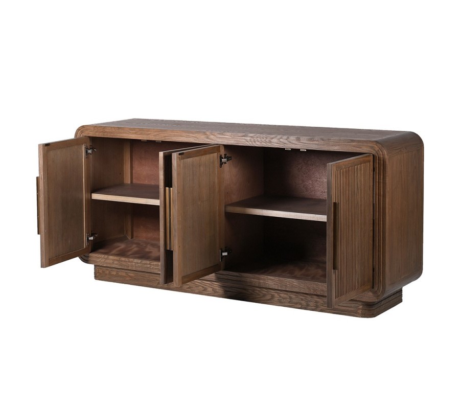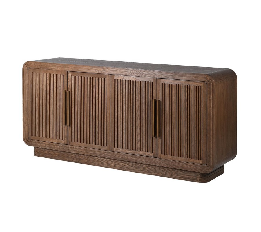 Štýlový príborník Suriel dokonale doplní každú retro ladenú jedáleň či obývačku. Tento unikátny kúsok je vyrobený z kvalitného masívneho dreva v prírodnom teplom hnedom odtieni. Už na prvý pohľad upúta svojím tvarom so zaoblenými rohmi vytvárajúcim nezameniteľný retro vzhľad. Príborník disponuje poličkami so štyrmi dvierkami, ktoré sú doplnené o zaujímavý zvislý rebrovaný reliéfny vzor. Príborník Suriel tak získava originálny vzhľad, ktorý môže zdobiť aj váš interiér! Dokonalú kombináciu vytvorí s hnedým masívnym stolom či výraznou čalúnenou sedačkou a hojdacím kreslom. Dotvorte si priestory vašej obývačky či jedálne príborník Suriel a vyčarte si tak v interiéri skutočný retro nádych!