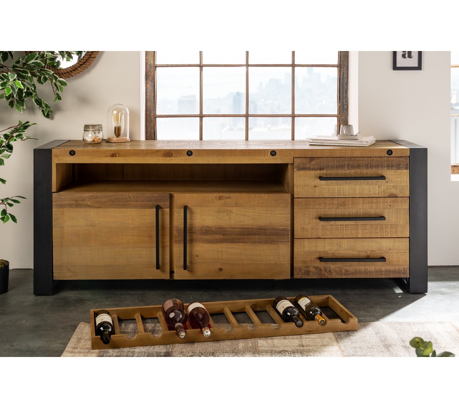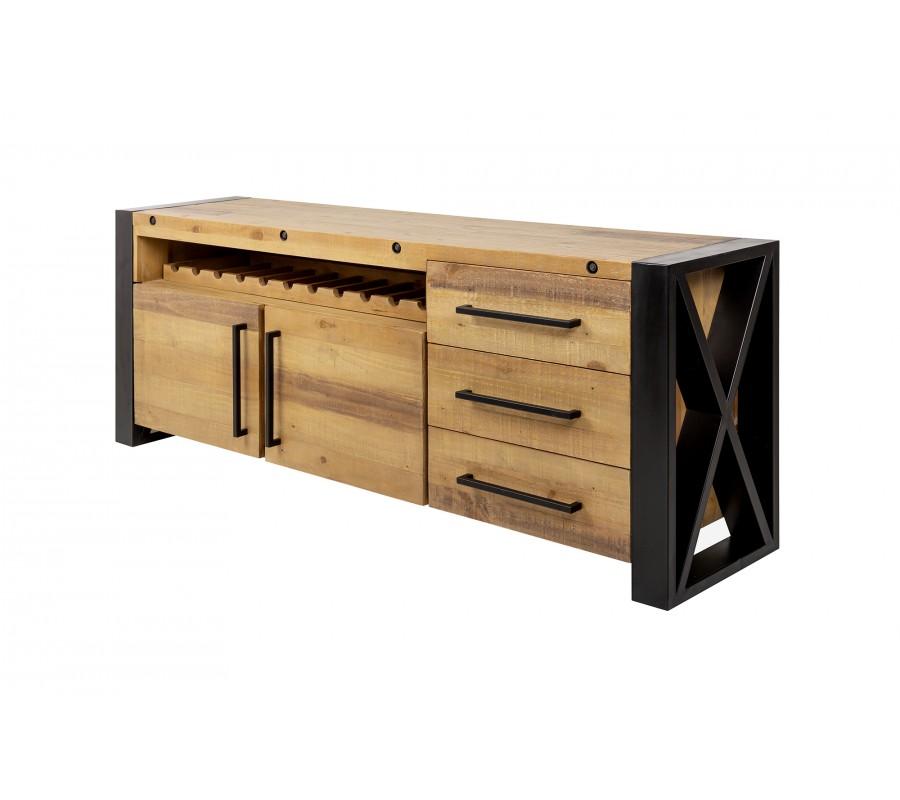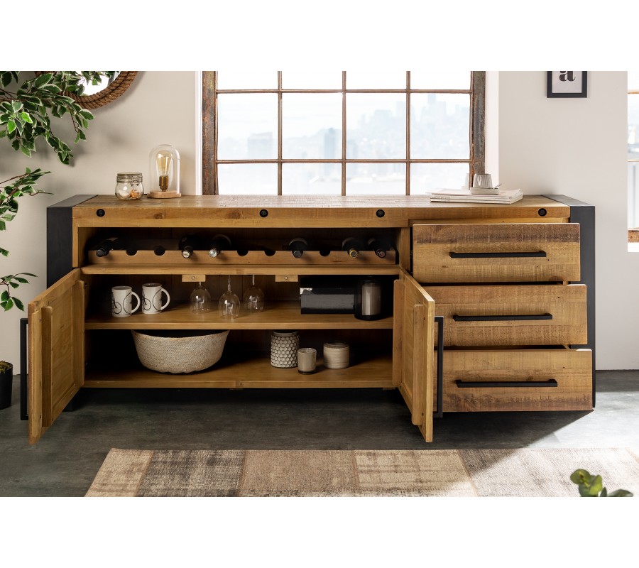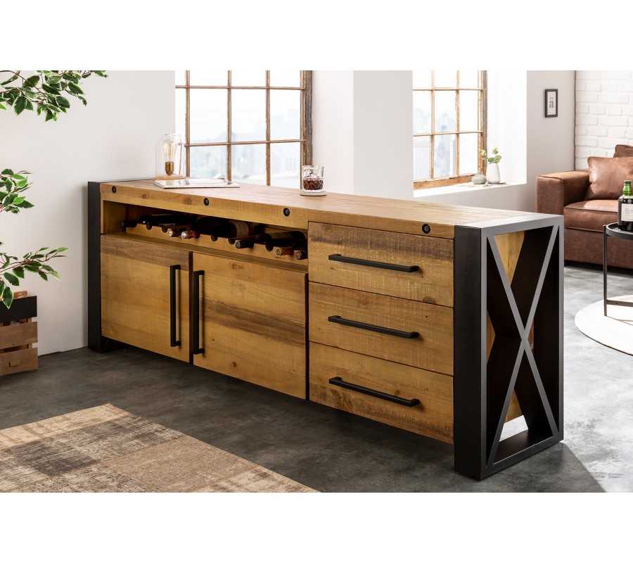Industriálny príborník s vinotékou Adin je inšpirovaný továrenským štýlom minulého storočia, je viac než len ukladací priestor ale aj ako pult alebo bar.