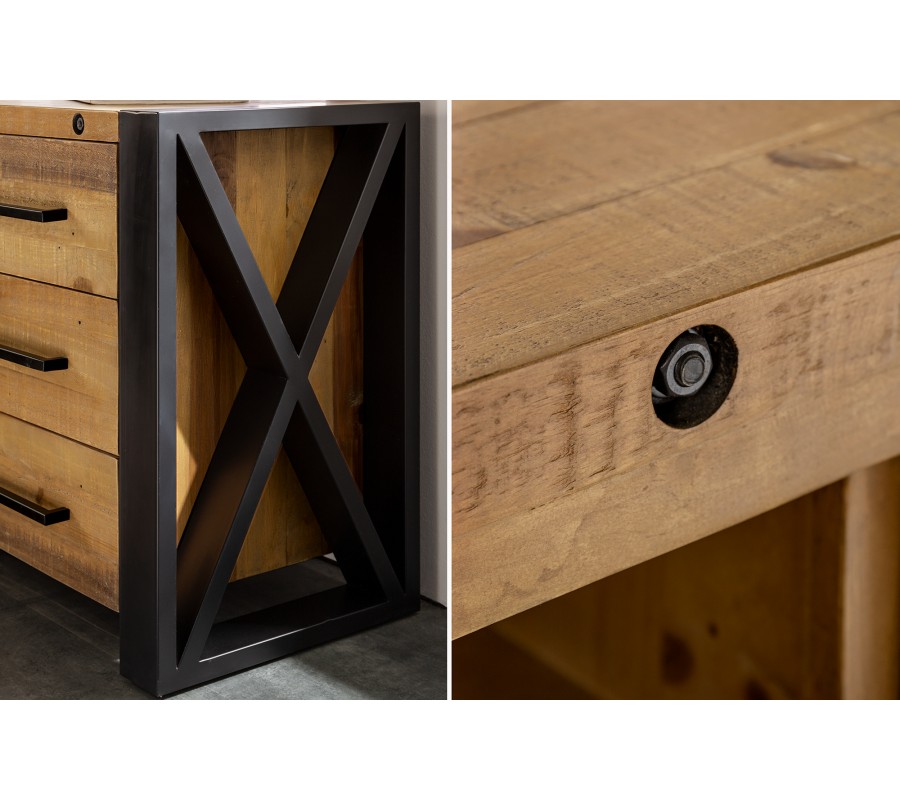 Príborník Adin je kombináciou tradície, funkčnosti a industrialneho dizajnu. Je to dokonalá voľba pre tých, ktorí hľadajú jedinečný a štýlový kúsok nábytku s industriálnym šarmom.