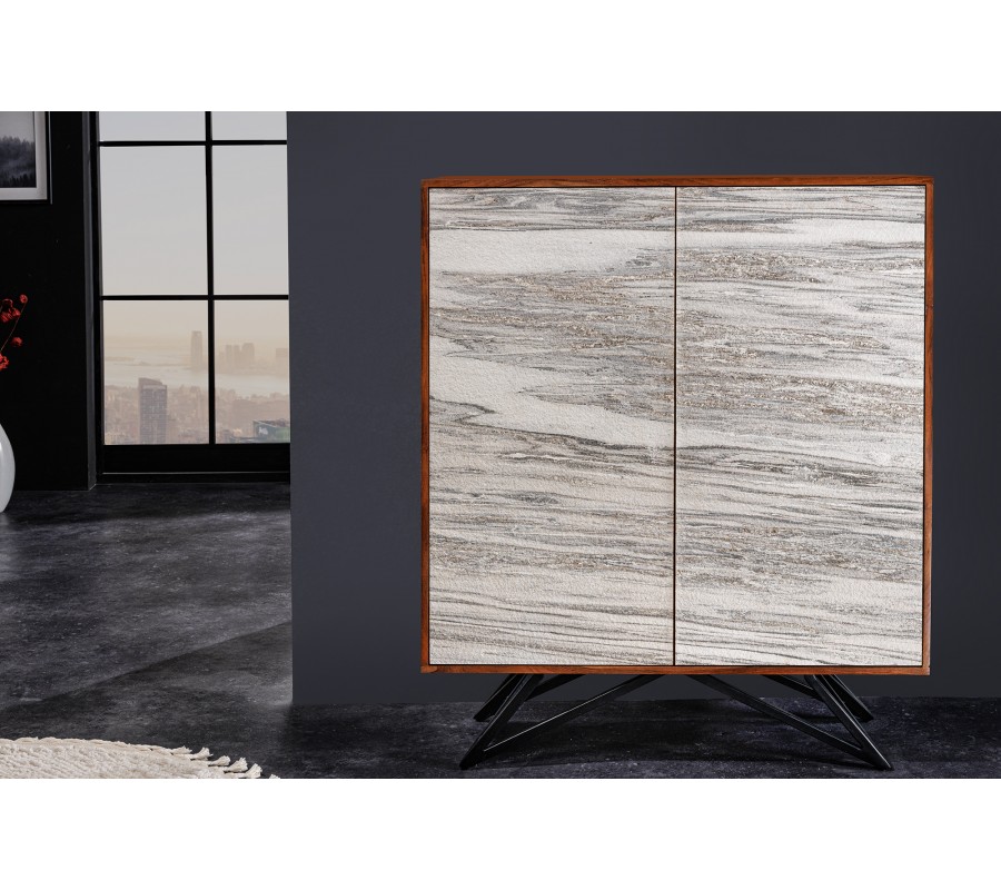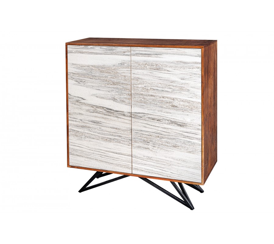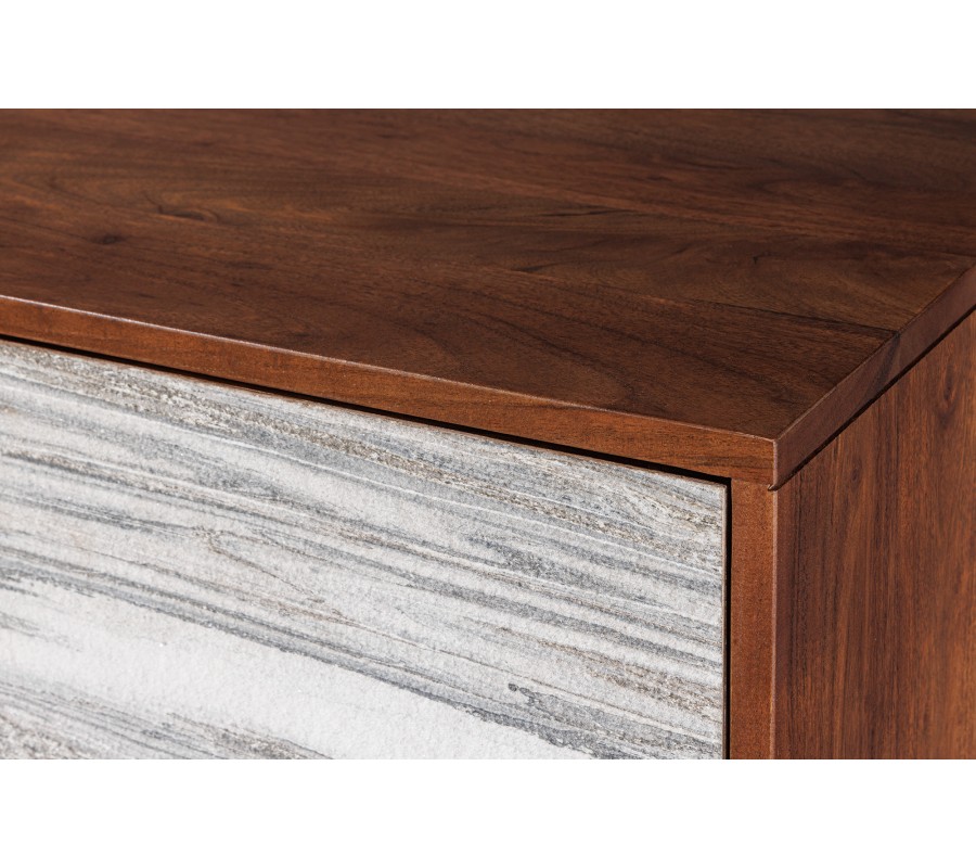 Príborník kombinuje moderný dizajn s prvky art deco, vytvárajúc tak sofistikovaný vzhľad. Dizajn mramoru na povrchu príborníka pridáva do interiéru luxusný a nápadný prvkov. Dvojdverový príborník s dreveným rámovaním poskytuje dostatok priestoru na uskladnenie rôznych vecí.