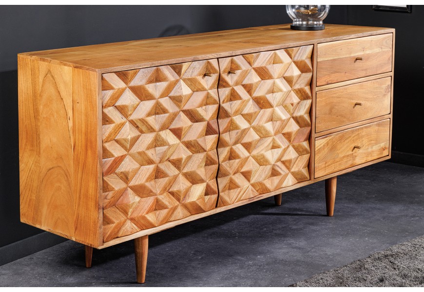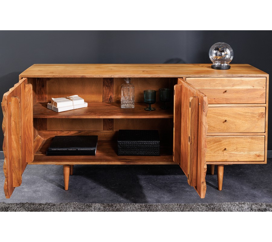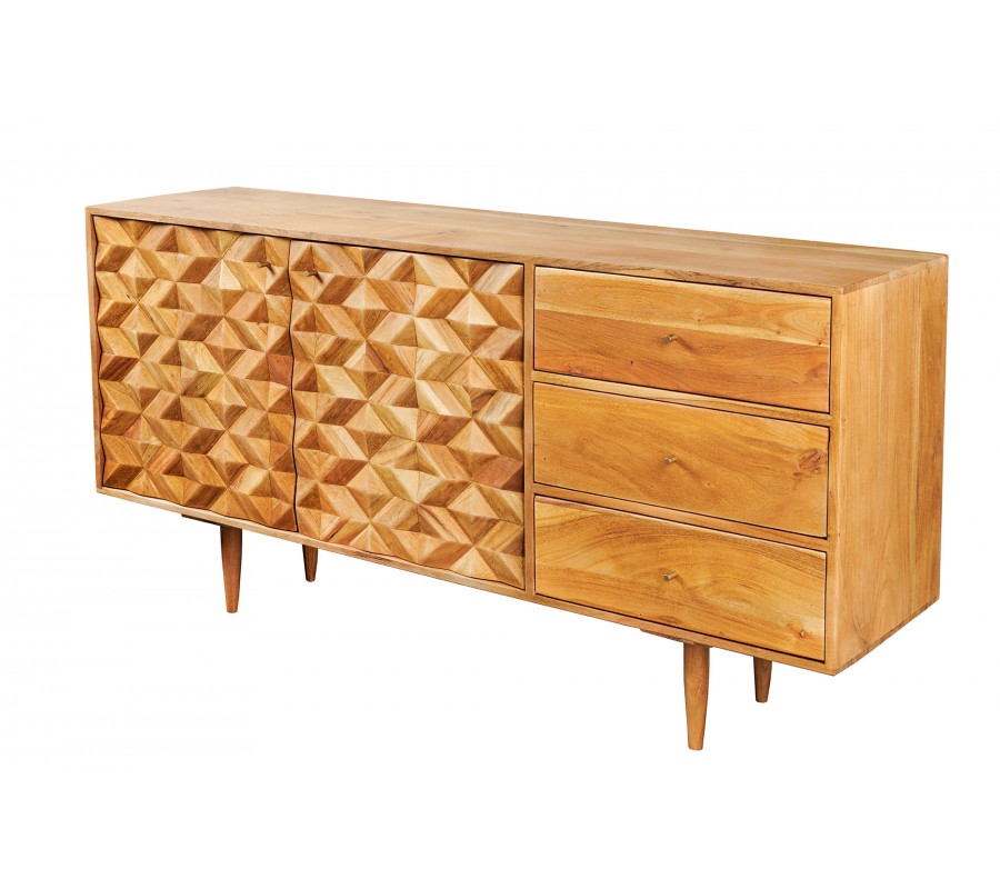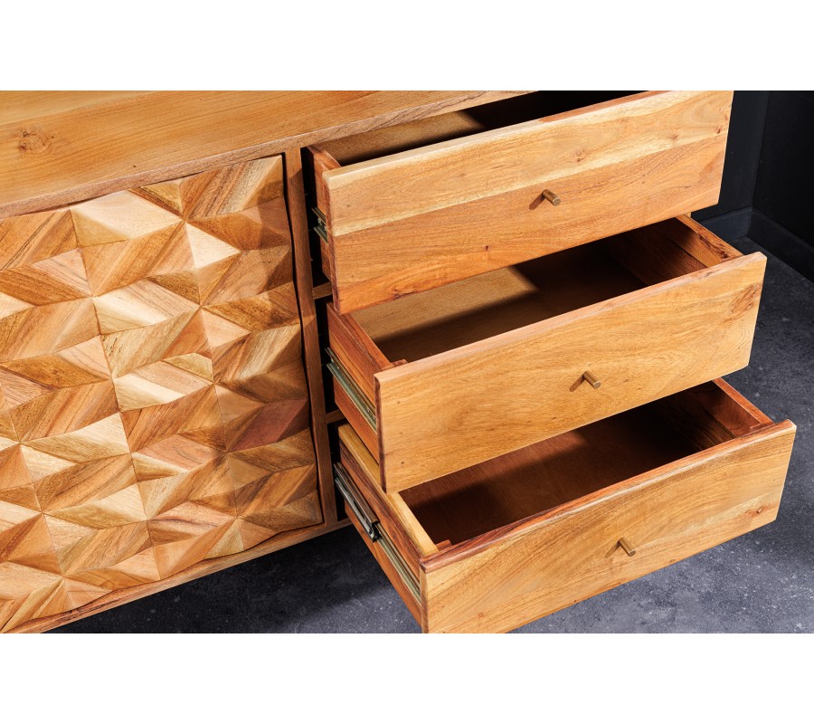 Luxusný retro príbornik Camille z masívneho akaciového dreva s tromi zásuvkami a dvoma dvierkami 145cm
