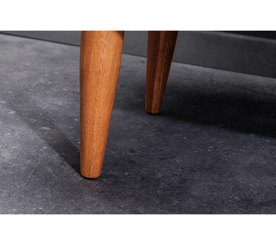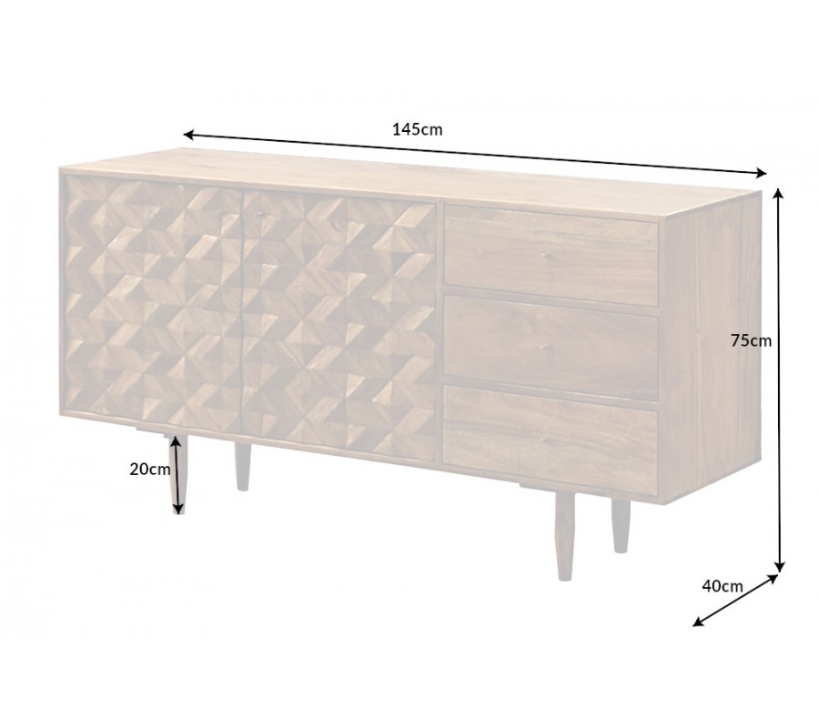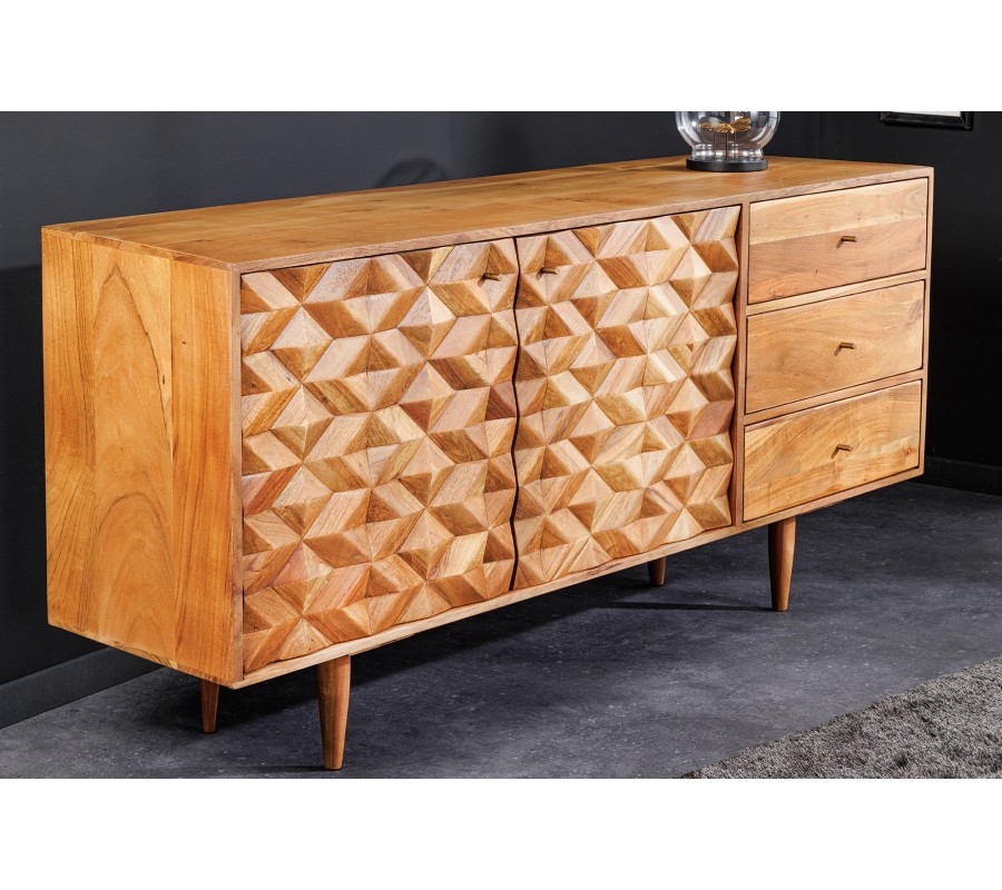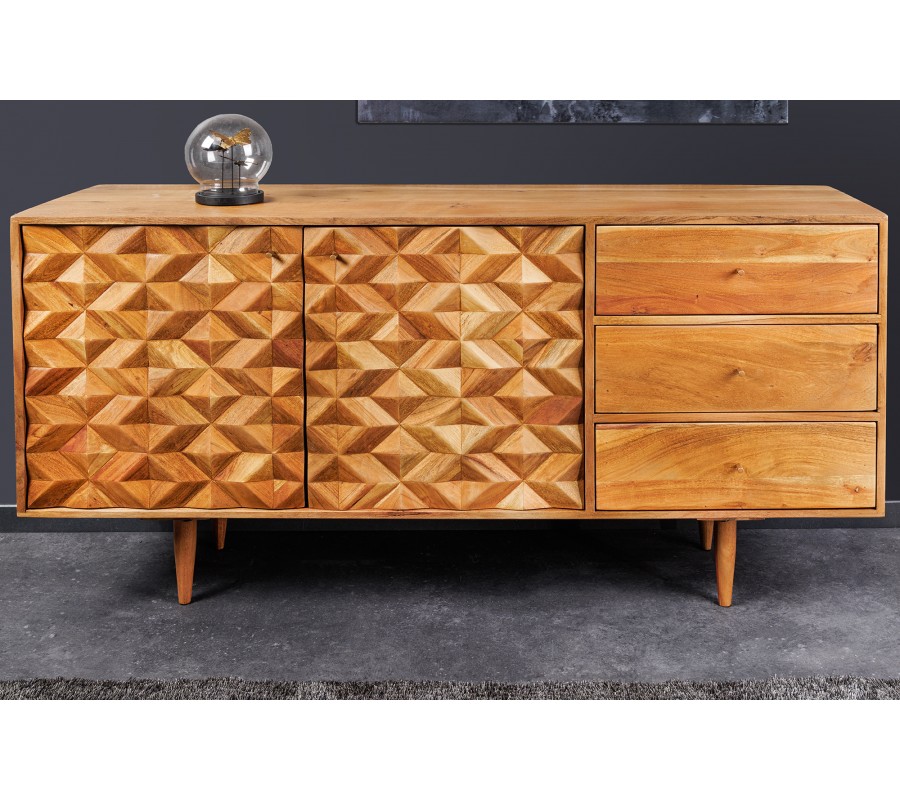 Majstrovský kúsok Camille je vyrobený z masívneho akáciového dreva. Dve pôvabné dvierka odhaľujú vnútorný priestor, ktorý je spojením funkčnosti a elegancie. S dostatkom miesta na uskladnenie vašich cenností a predmetov, táto časť príborníka je skvostným pokračovaním jeho vnútorného umenia, no nezostáva len pri tom – na každom z nich nájdete precízne vyrezávané, 3D vzory, ktoré môžu pripomínať mozaiku, ktoré mu dodávajú vznešený umelecky dotyk. Nachádzajú sa na ňom taktiež tri zásuvky, ktoré dodávajú ešte viac priestoru. Vlastnosti jedinečného príborníka zahŕňajú nielen jeho vizuálny dojem, ale aj odolnosť a trvanlivosť masívneho akáciového dreva. Kúsok nábytku je nielen o dizajne, ale aj o kvalite, ktorá z neho robí investíciu do dlhodobého štýlu a potešenia. Môžeme ho doplniť o prvky v prírodných zemitých farbách a vystihnúť jeho eleganciu. Preto ak Vašou slabosťou sú prírodné prvky, neváhajte siahnuť po príborníku Camille, ktorý očarí Váš zrak. Príborník sa hodí do jedálne ladenej v retro štýle a vďaka jeho prevedeniu s výrazným masívnym drevom a kombinácii s jednoduchými líniami sa nestratí ani vo vidiecky ladenej jedálni čí obývačke.