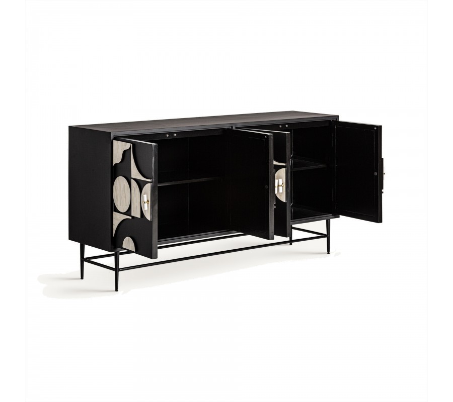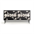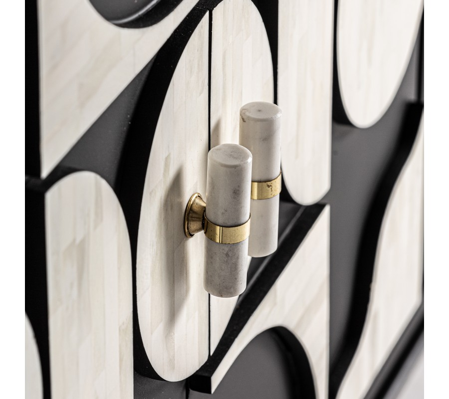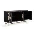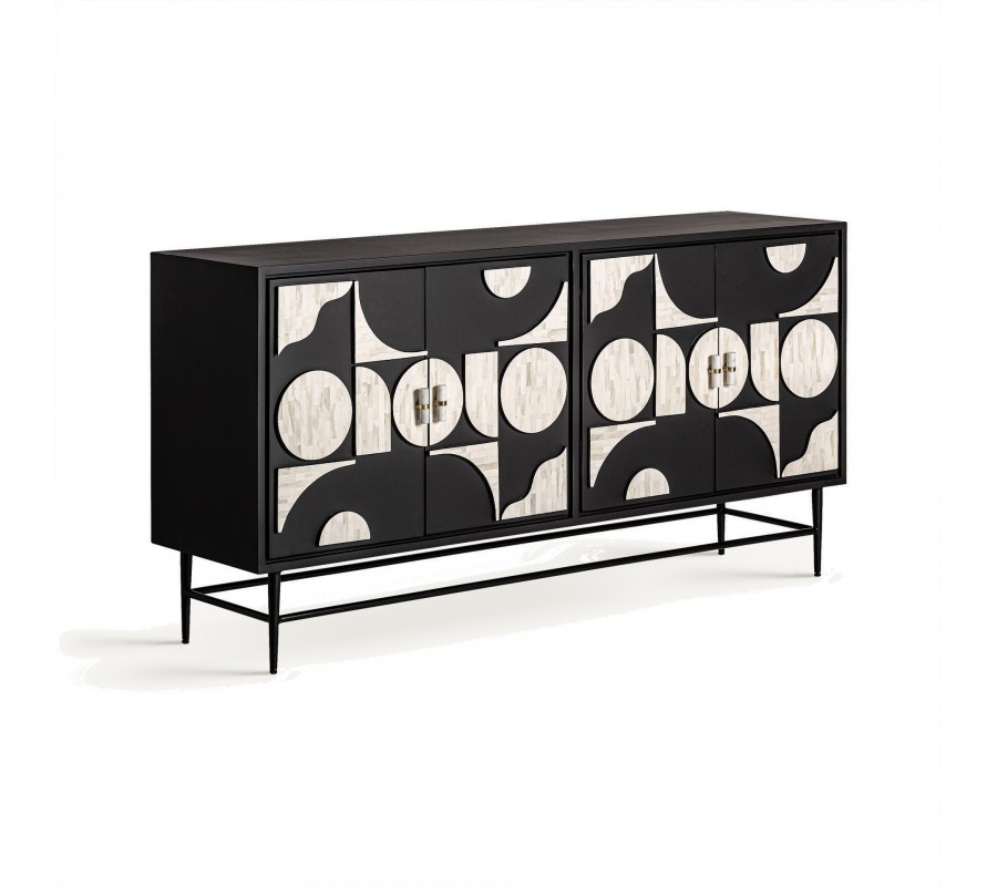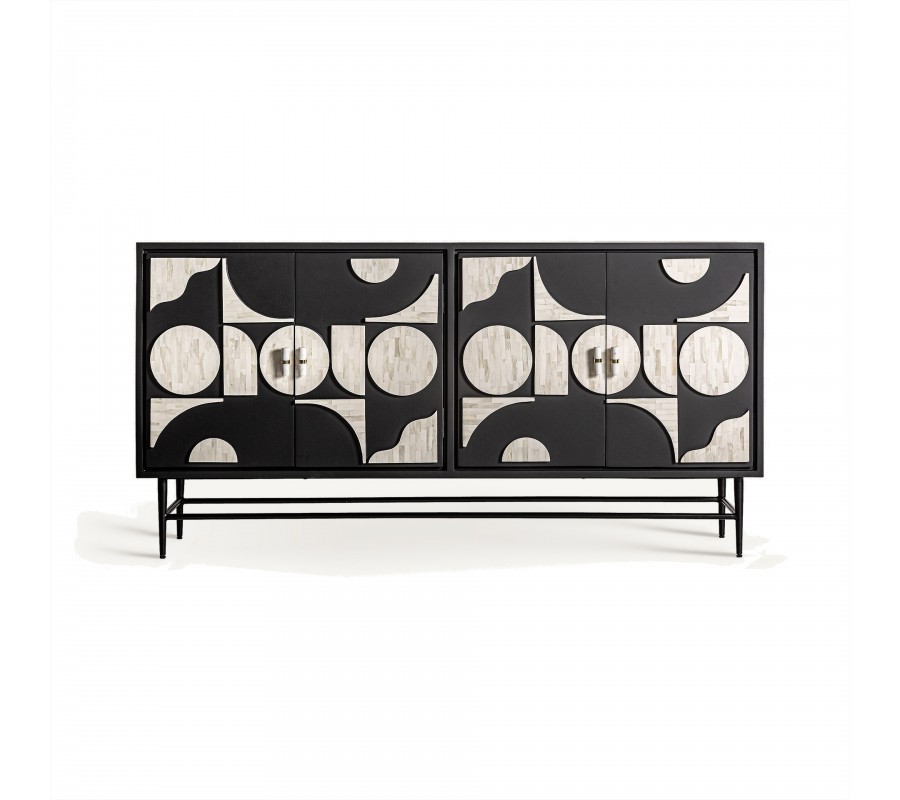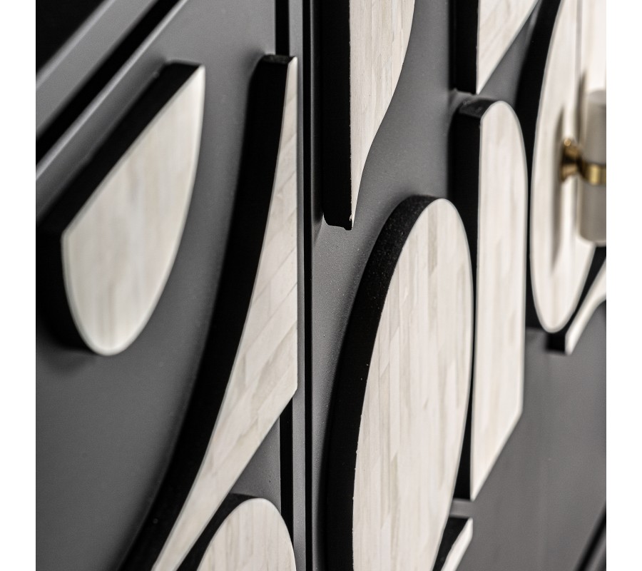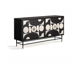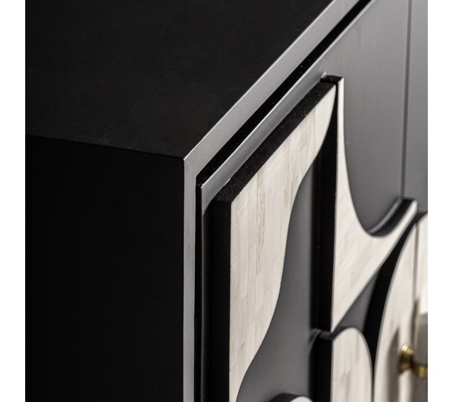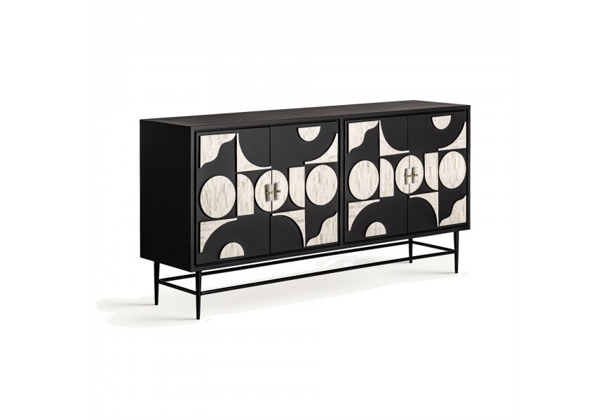 Luxusný art deco príborník Vasilij so štyrmi dvierkami s geometrickou kosťovou inkrustáciou v čiernej a béžovej farbe 160 cm