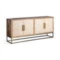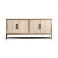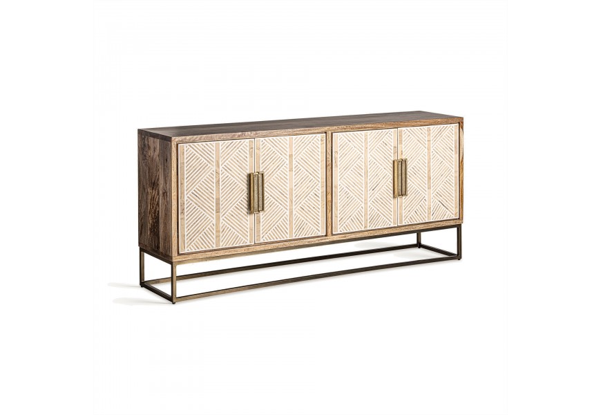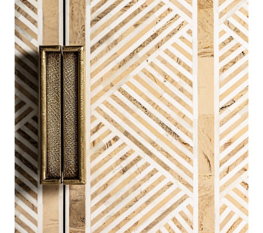 Luxusný art deco príborník Kamal s geometrickou kosťovou inkrustáciou s zlatými metalickými prvkami béžová 180 cm