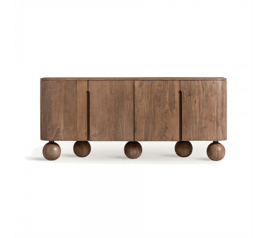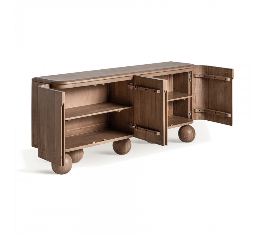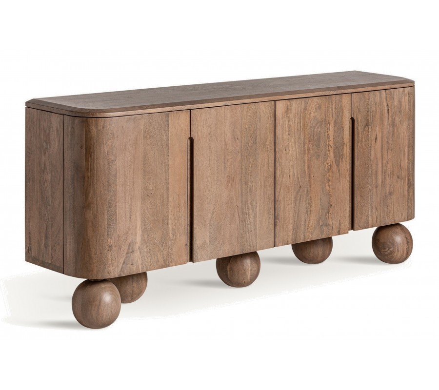 Luxusný štvordverový drevený príborník Palawan s guľatými nožičkami v svetlej hnedej farbe 180 cm