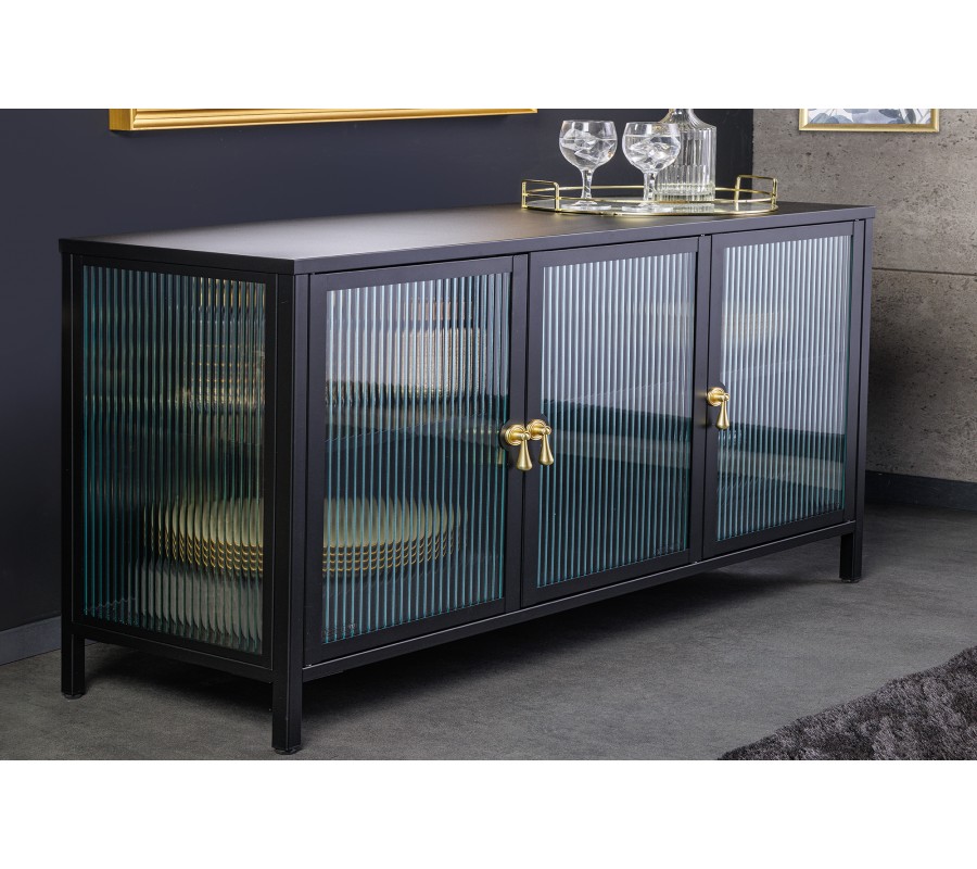 Príborník Industria Durante vás očarí svojím unikátnym skleneným dizajnom. Originálne rebrovanie a lineárna silueta z neho robia jedinečný moderný, vizuálne pôsobivý prvok miestnosti, ktorý očarí vašich hostí.