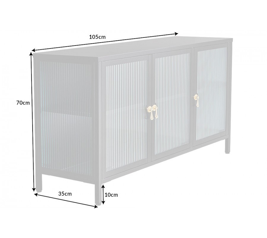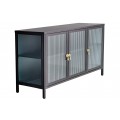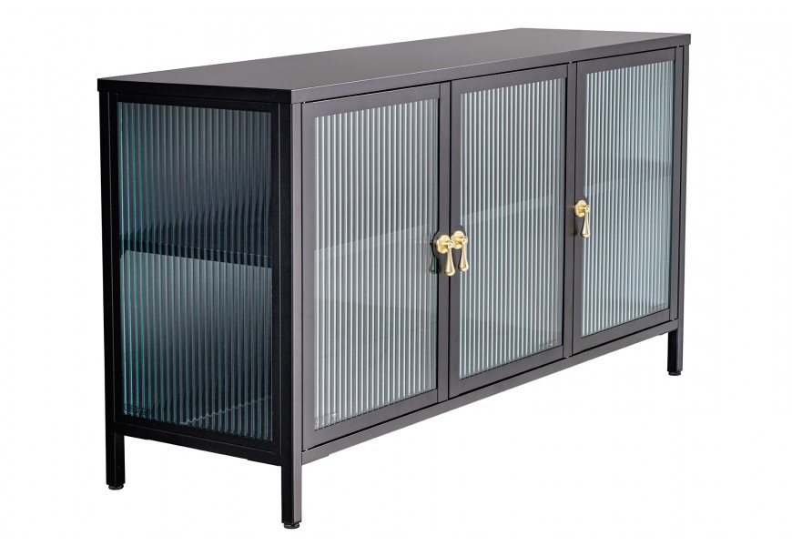 Moderný industriálny sklenený príborník Industria Durante s rebrovaným dizajnom a tromi dvierkami 105 cm