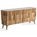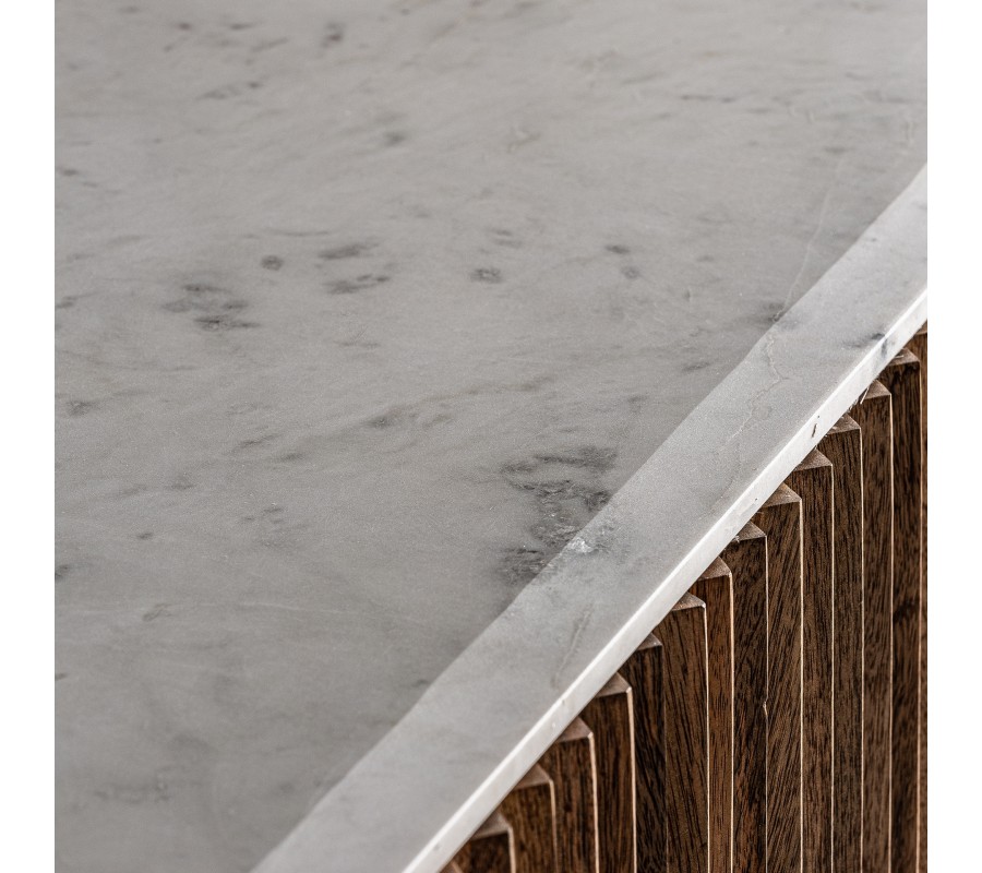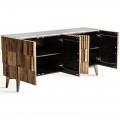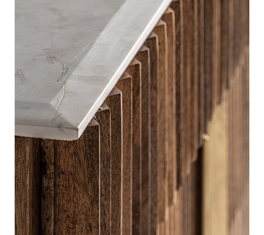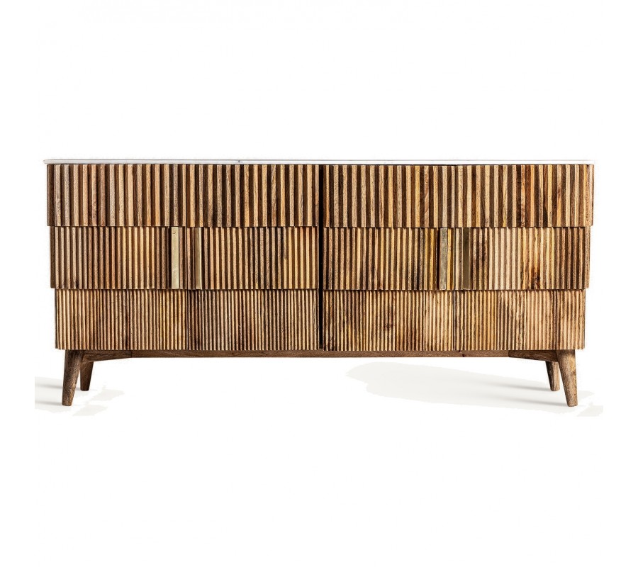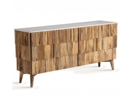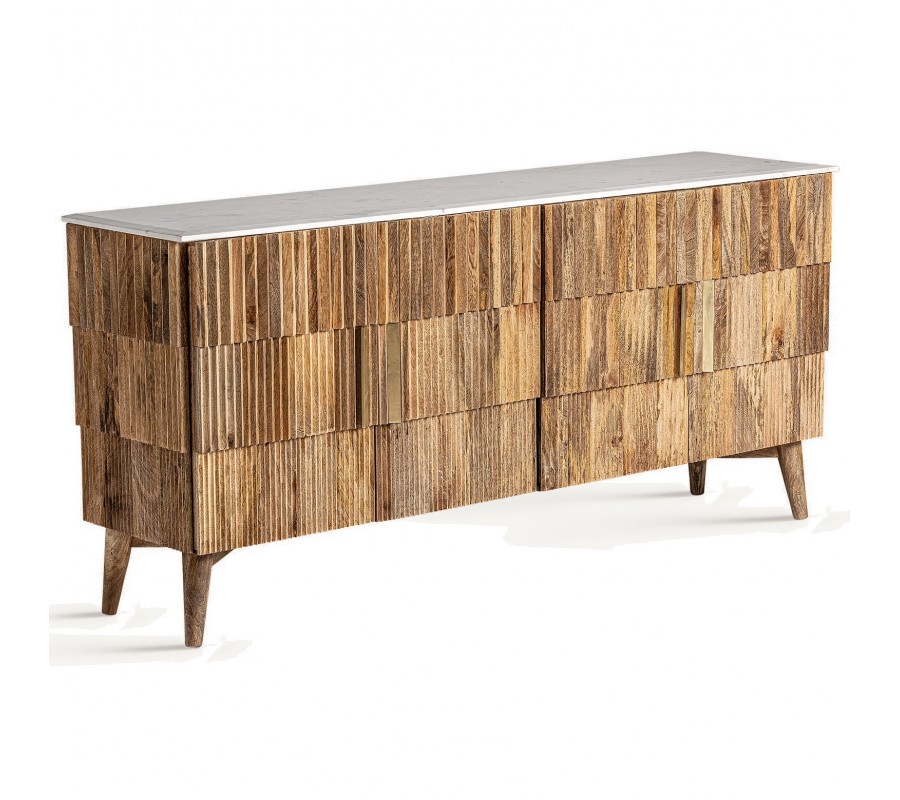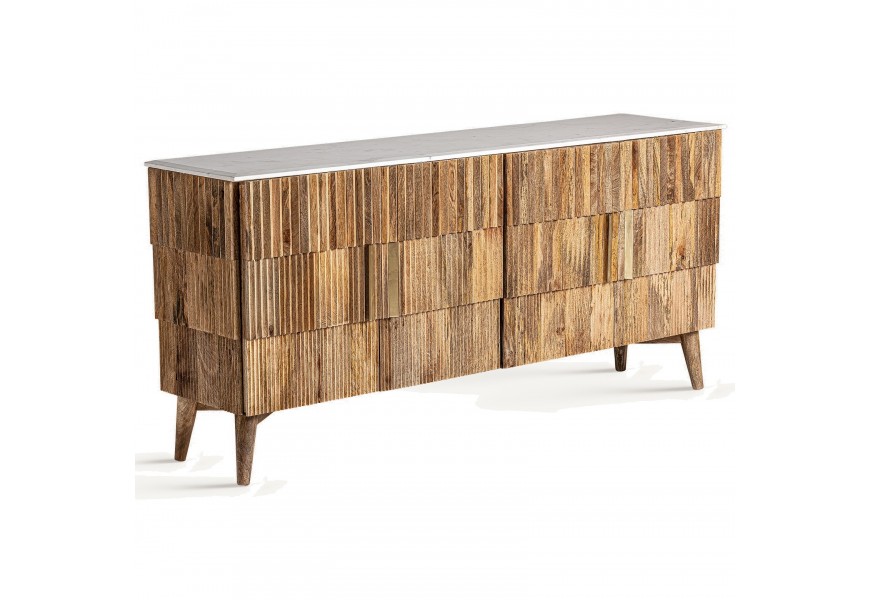 Luxusný masívny hnedý príborník Plissé Nature so skladaným harmonikovým dizajnom a mramorovou doskou 180 cm