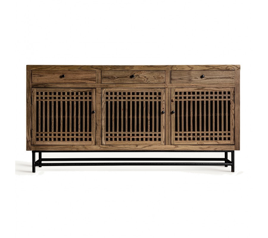 Luxusný orientálny svetlo hnedý drevený príborník Verdy s mrežovanými dvierkami a tromi zásuvkami 180 cm