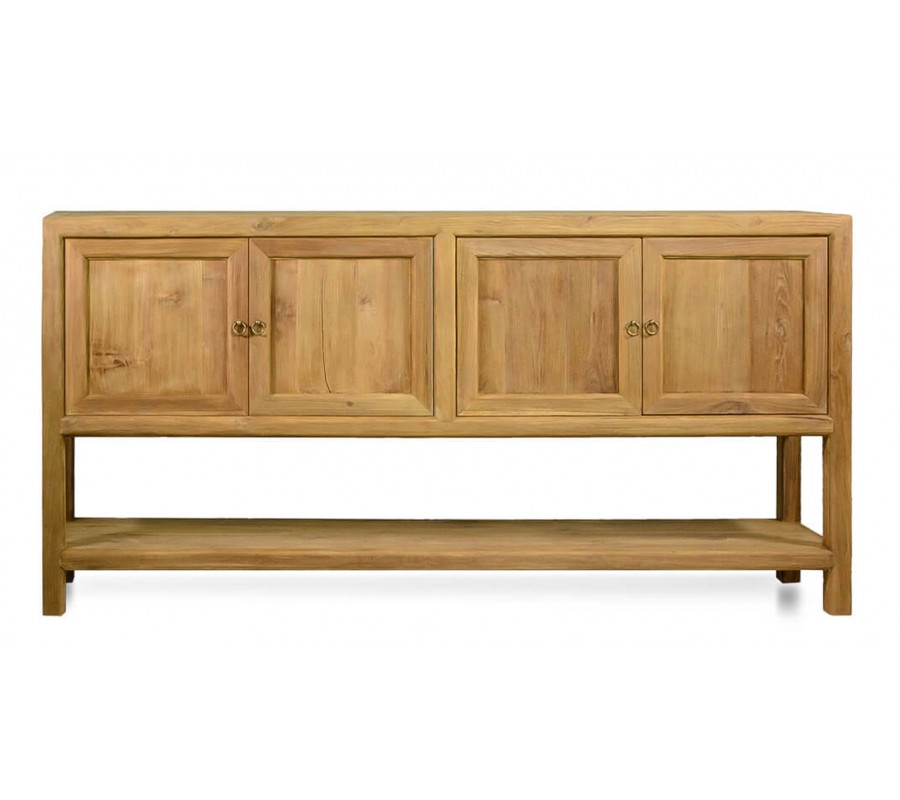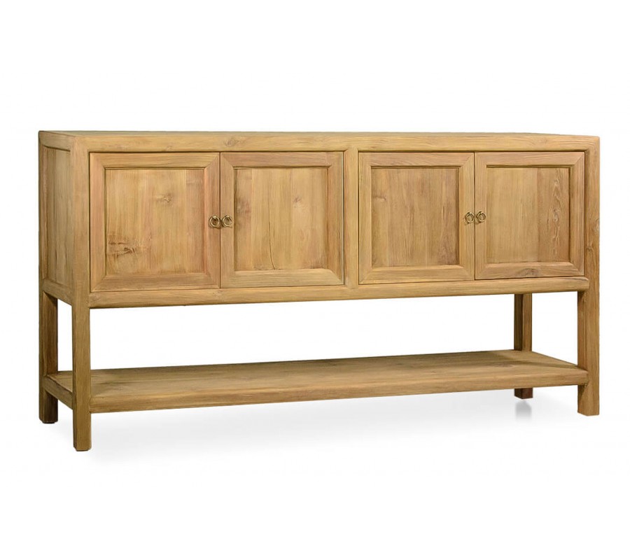 Koloniálny masívny štvordverový príborník Calladia s policou z teakového dreva v svetlej hnedej farbe 180 cm