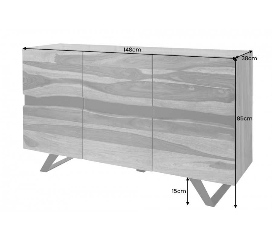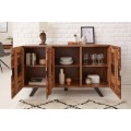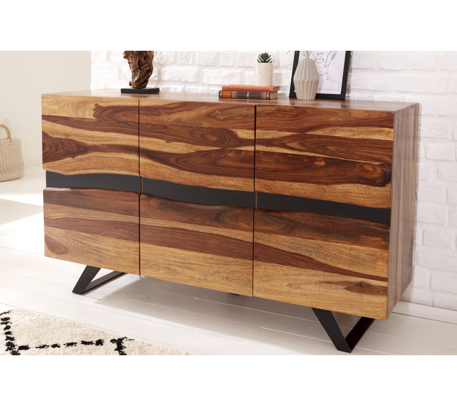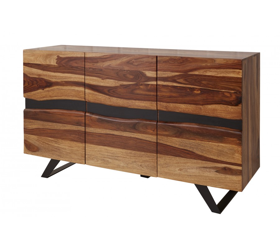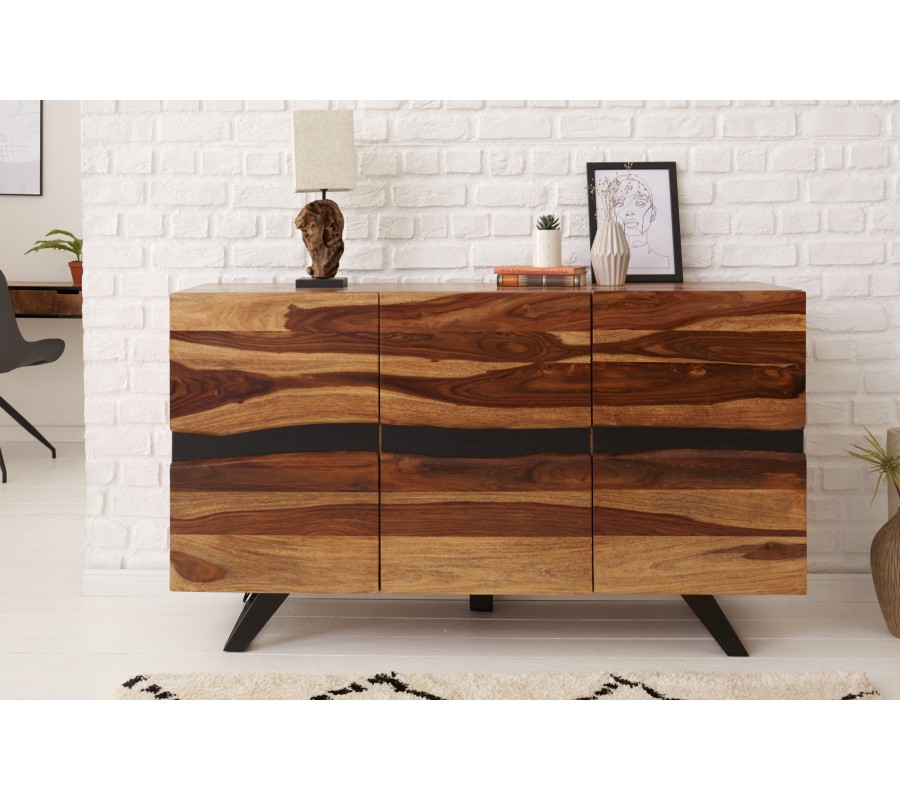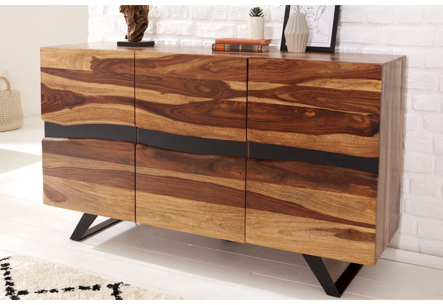 Moderný masívny hnedý trojdverový príborník Amazonas so sheeshamového dreva s naturálnym okrajom stromu 148 cm