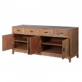 Dizajnový masívny štvordverový príborník Magnus v hnedej farbe so štyrmi zásuvkami s vidieckym nádychom 178 cm