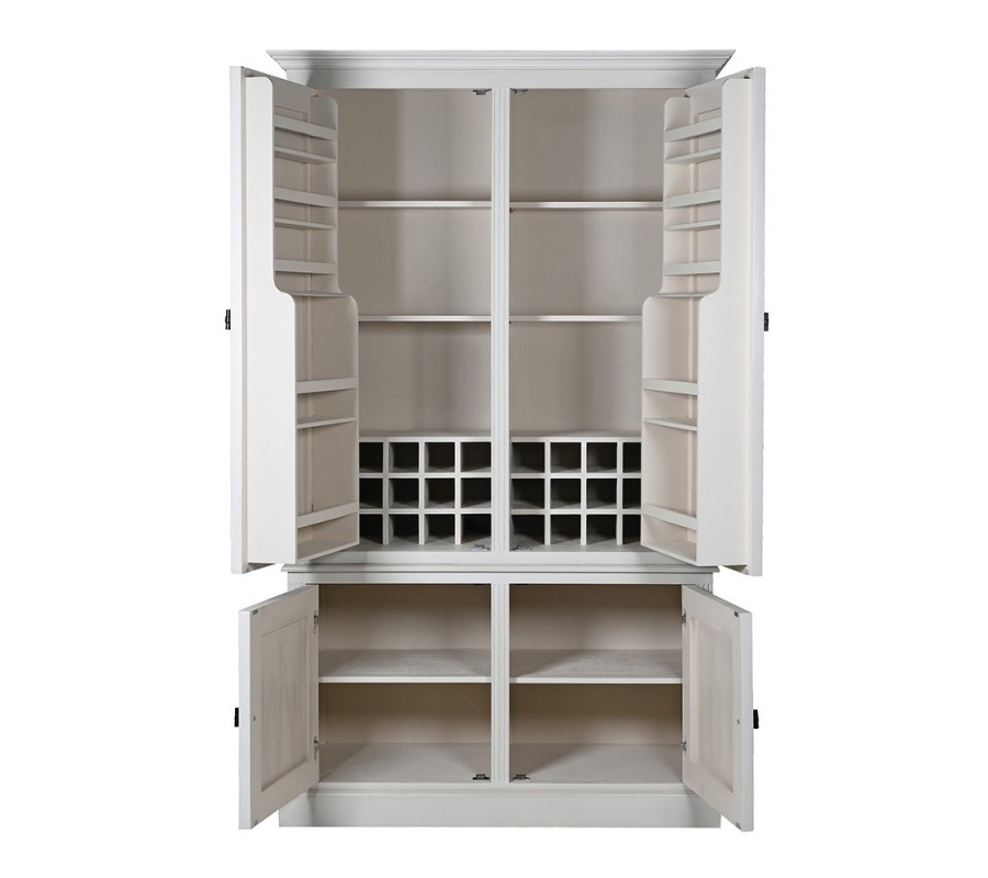 Vysoký príborník Perell je ideálnou voľbou do jedálne či kuchyne zariadenej vo vidieckom štýle. Môžete ho skombinovať so svetlým provensálskym jedálenským stolom s vyrezávaným zdobením, či so stoličkami so vzorovaným poťahom. Organizácia úložného priestoru vám tiež zaručí praktické a prehľadné uskladnenie kuchynského náčinia, doplnkov či potravín.