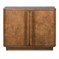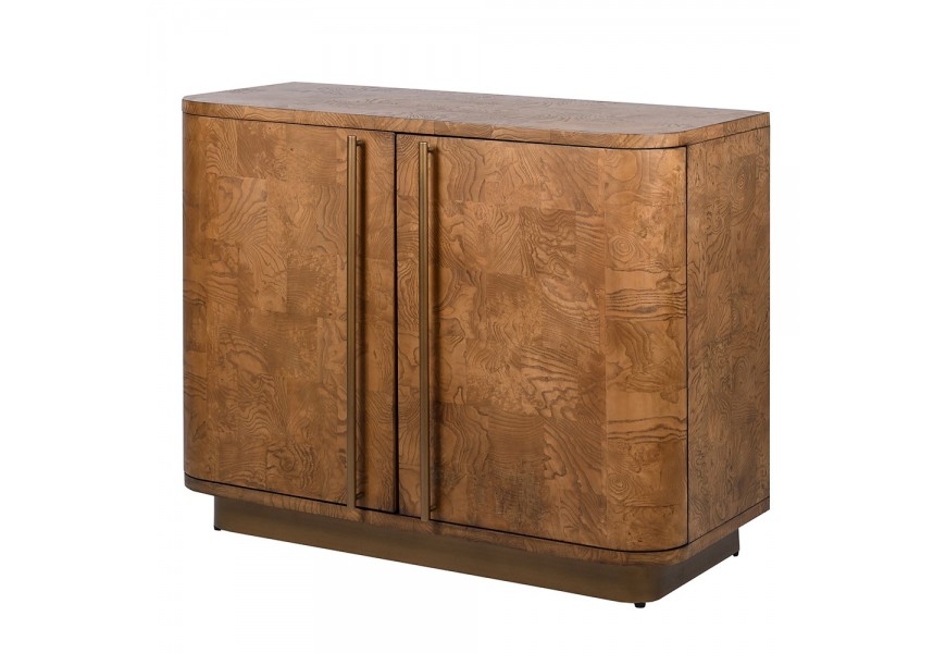 Luxusná retro hnedá úložná skrinka Ajaxio s dvomi dvierkami z dreva burl s detailmi v zlatej farbe 102 cm