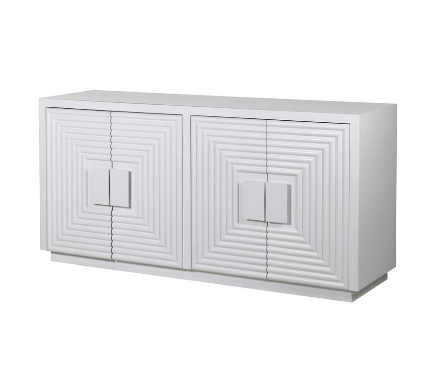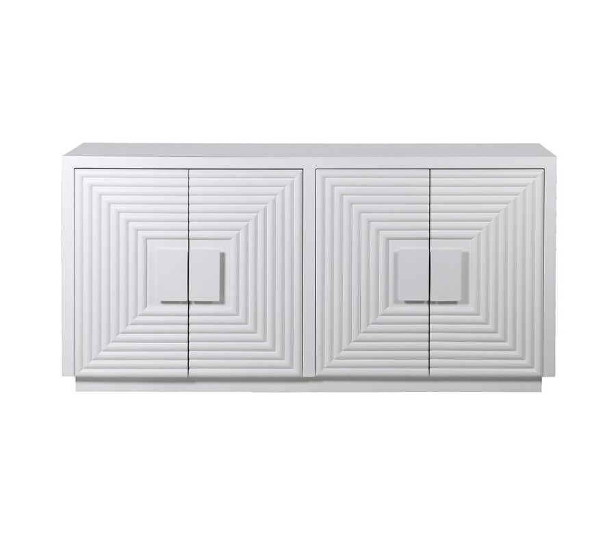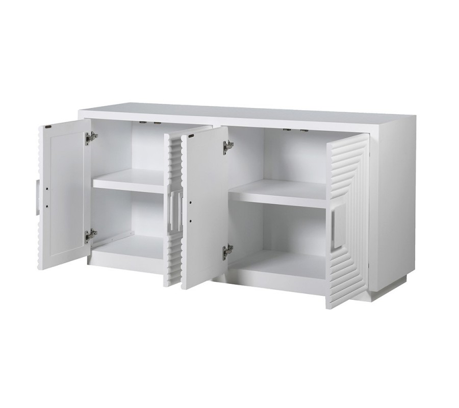 Luxusný biely obdĺžnikový štvordverový art deco príborník Busker s dvomi policami a dekoratívnymi dvierkami 163 cm