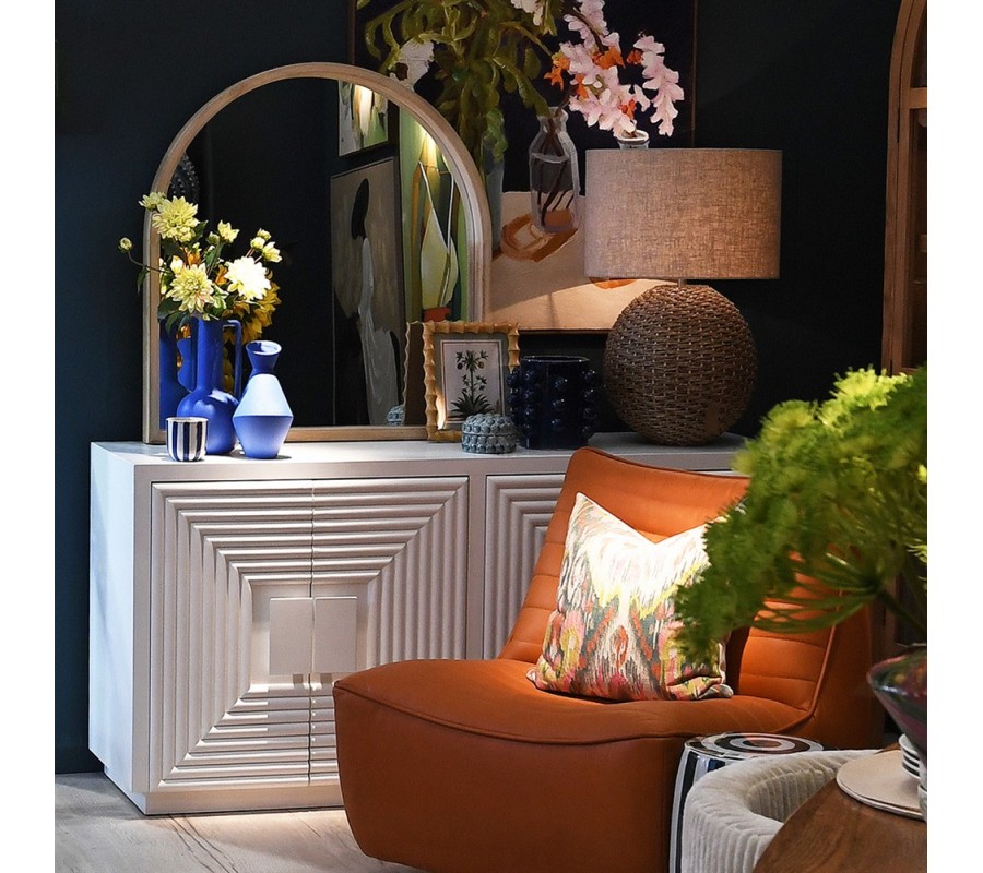 Vo vnútri sa nachádzajú dve police, ktoré poskytujú praktický úložný priestor. Štýl príborníka je moderný s art deco prvkami, vďaka čomu sa hodí do elegantných a minimalistických interiérov. Vynikne v obývačke, jedálni alebo pracovni, kde môže slúžiť na uskladnenie riadu, dekorácií alebo iných predmetov. Kombinovať sa dá s nábytkom v neutrálnych farbách, ako je sivá, béžová alebo čierna, a s doplnkami v zlatých alebo strieborných tónoch, ktoré zvýraznia jeho geometrické detaily.