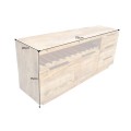Príborník obsahuje dve dvierka a tri zásuvky, čo poskytuje dostatok úložného priestoru na rôzne predmety, ako sú riady, poháre či dekorácie. Jeho dominantným prvkom je vínová polička, kde sa zmestí až 11 fliaš, a je umiestnená v hornej časti príborníka.