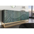 Dizajnový štvordverový orientálny príborník Cumbria s vyrezávanými reliéfmi v zeleno modrej farbe so zlatým kovovým rámom 177 cm