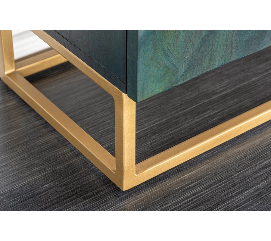 Podstava je tvorená kovovým rámom v zlatom odtieni, ktorý dodáva príborníku luxusný vzhľad a zároveň zaisťuje stabilitu. Štýlovo sa radí do oriantálneho, moderného alebo art deco štýlu. Vďaka svojmu jedinečnému dizajnu sa dá umiestniť do obývacej izby, jedálne alebo haly, kde sa stane výrazným prvkom interiéru.