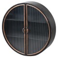 Dizajnová industriálna okrúhla nástenná dvojdverová skrinka Usil v čiernej farbe so sklenenou výplňou a štyrmi poličkami 98 cm
