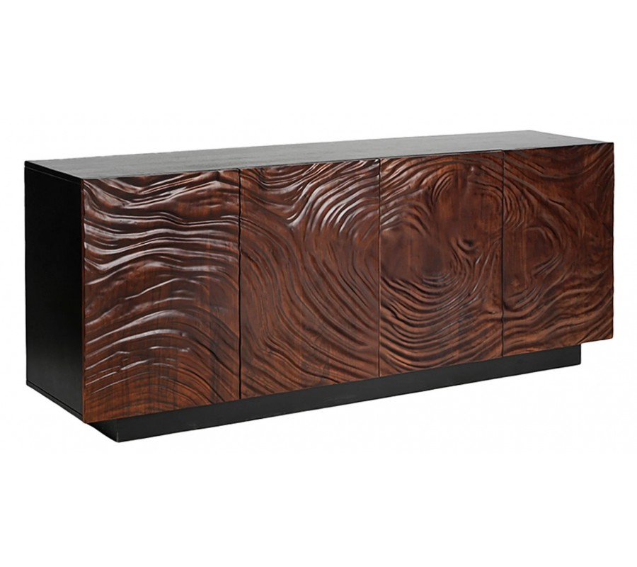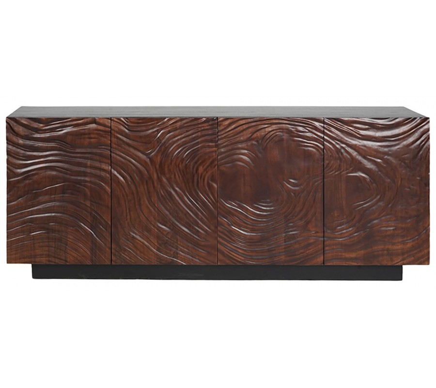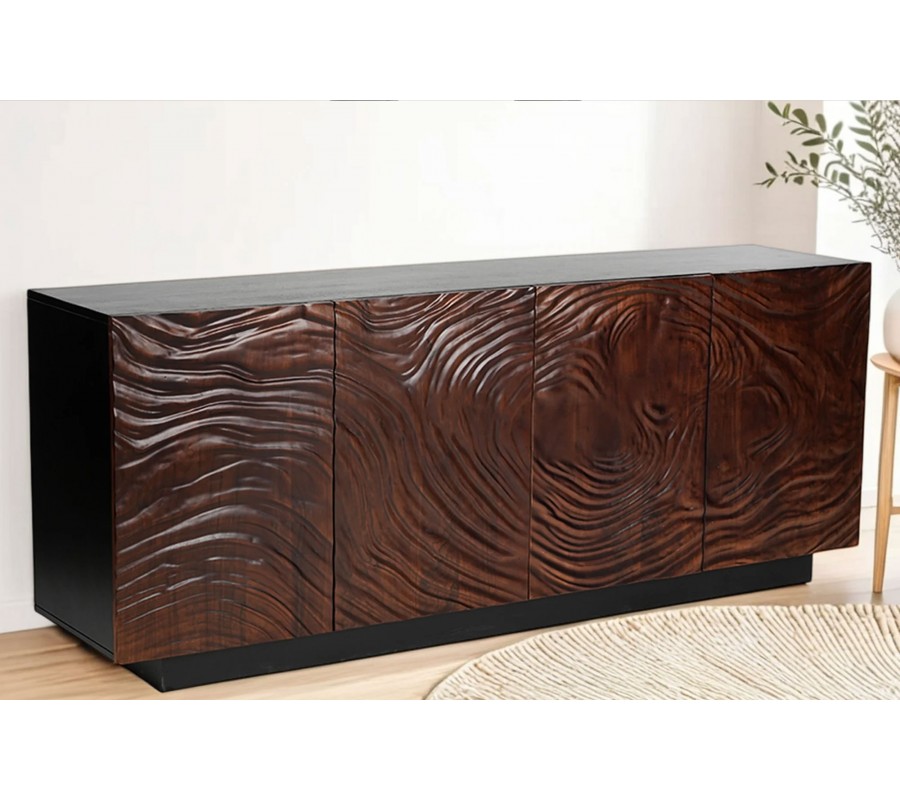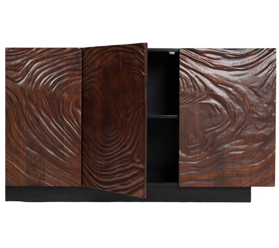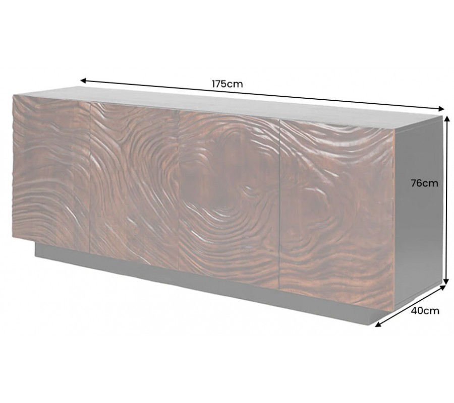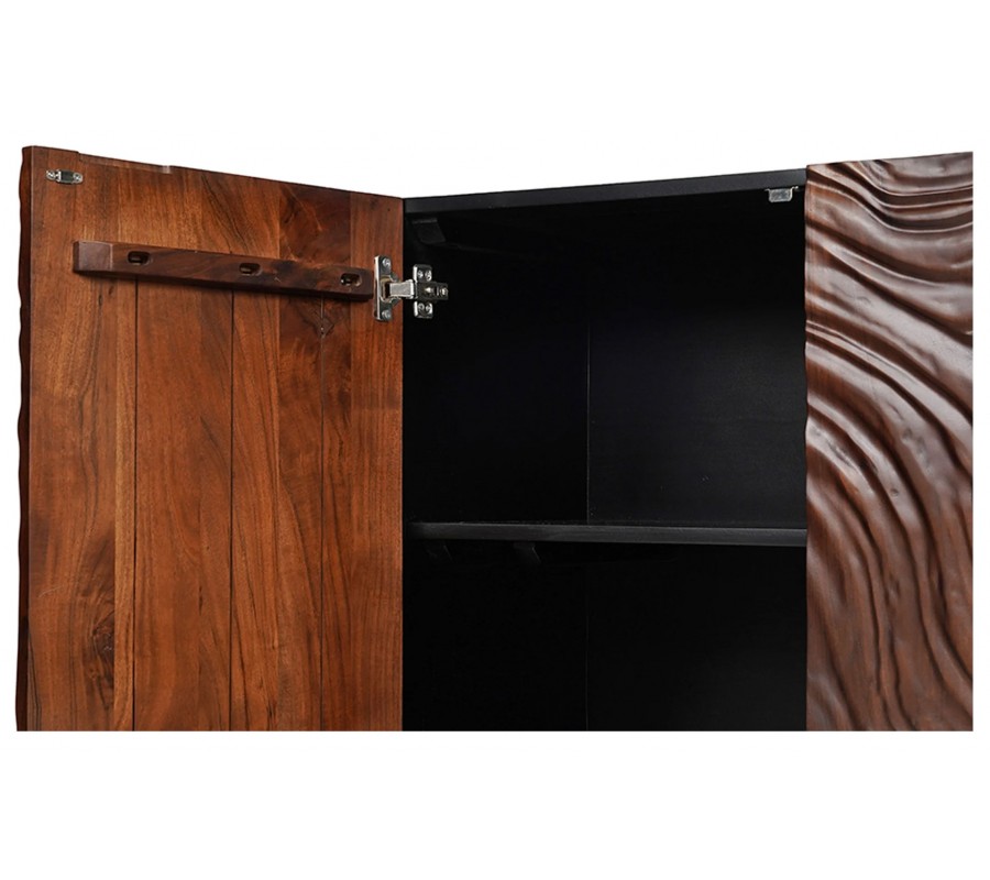 Dizajnový obdĺžnikový príborník Wiellde so štyrmi dvierkami v tmavohnedom lakovanom akáciovom dreve a 3D reliéfnym vzorom 175 cm