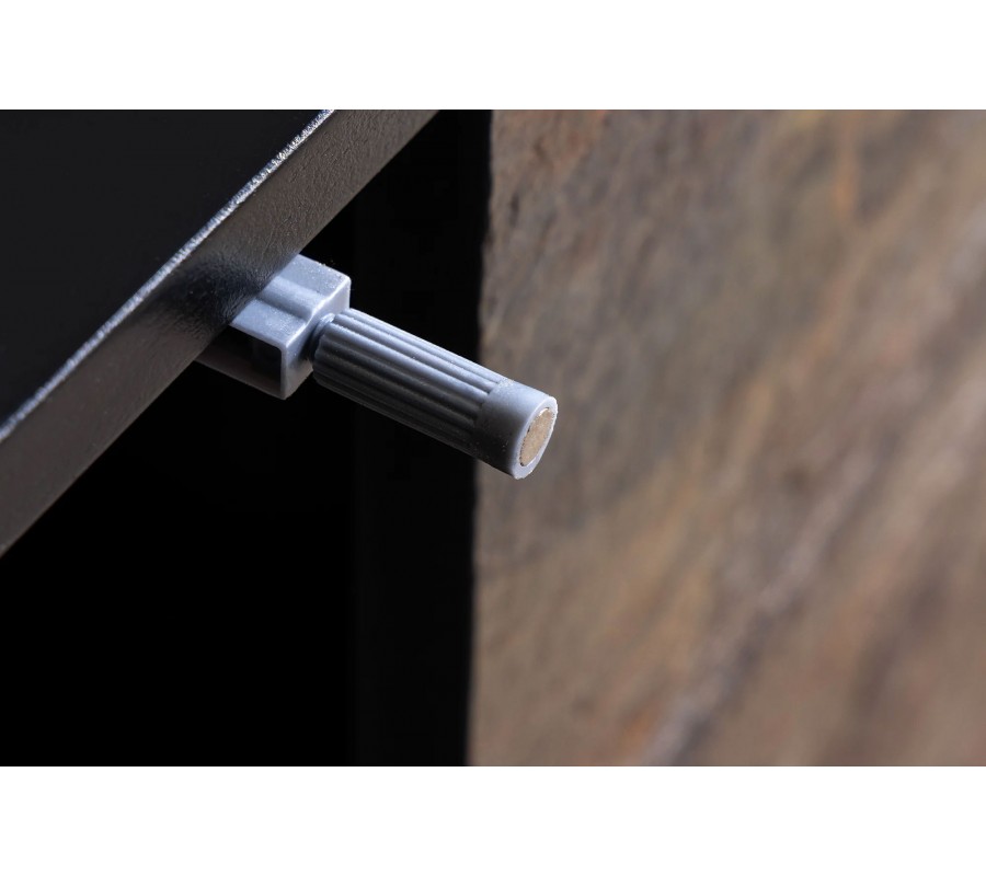 Dvierka bez úchytiek majú magnetické zatváranie, ktoré umožňuje jednoduché otváranie a zároveň zachováva minimalistický dizajn. Štyri dvierka skrývajú praktický úložný priestor s dvoma priehradkami s policami, ktoré ponúkajú dostatok miesta na riady, poháre alebo dekorácie.