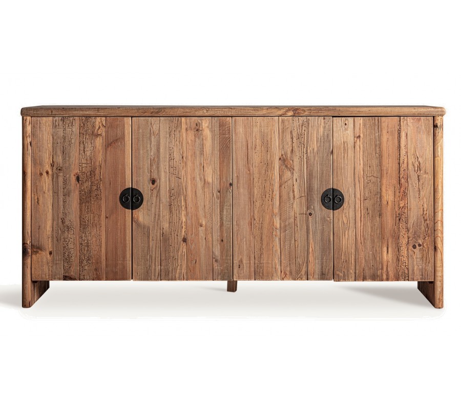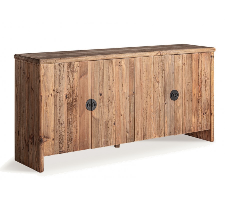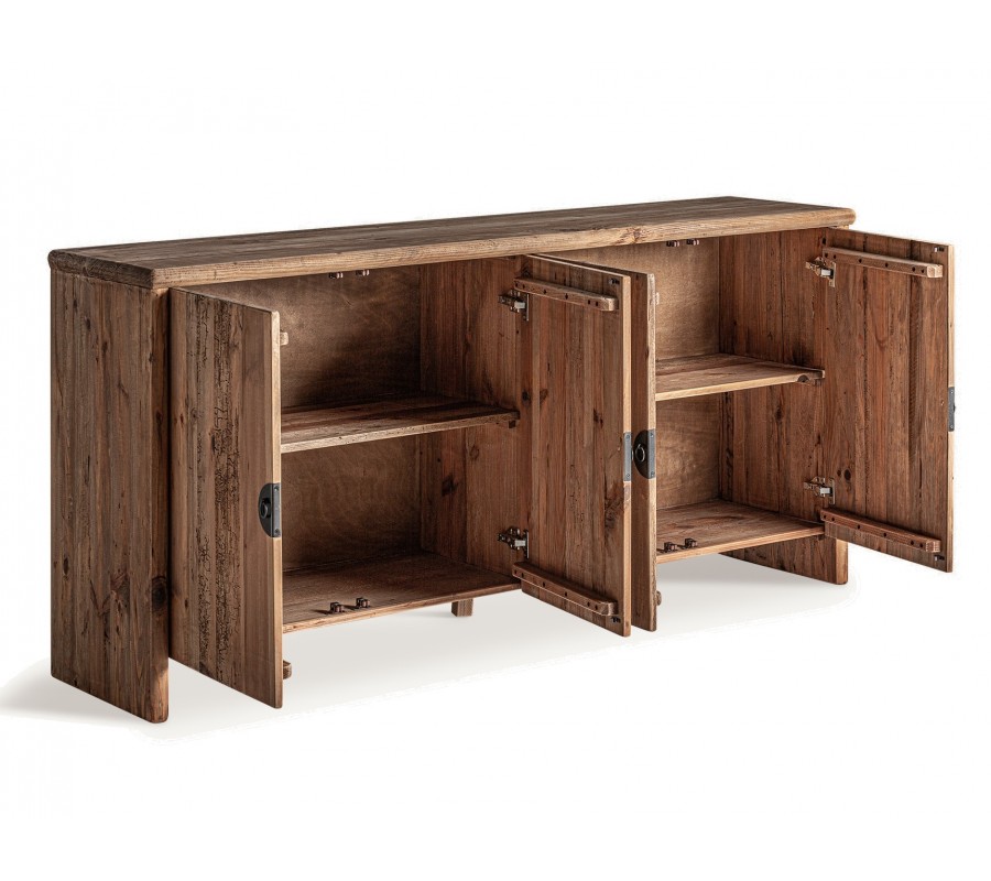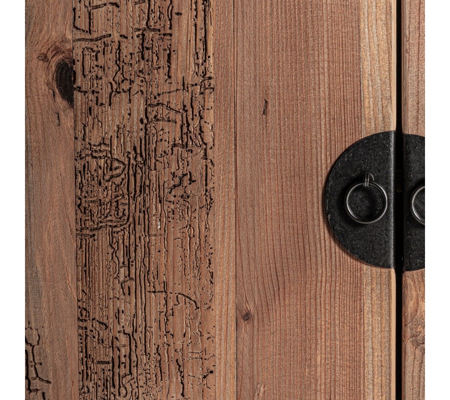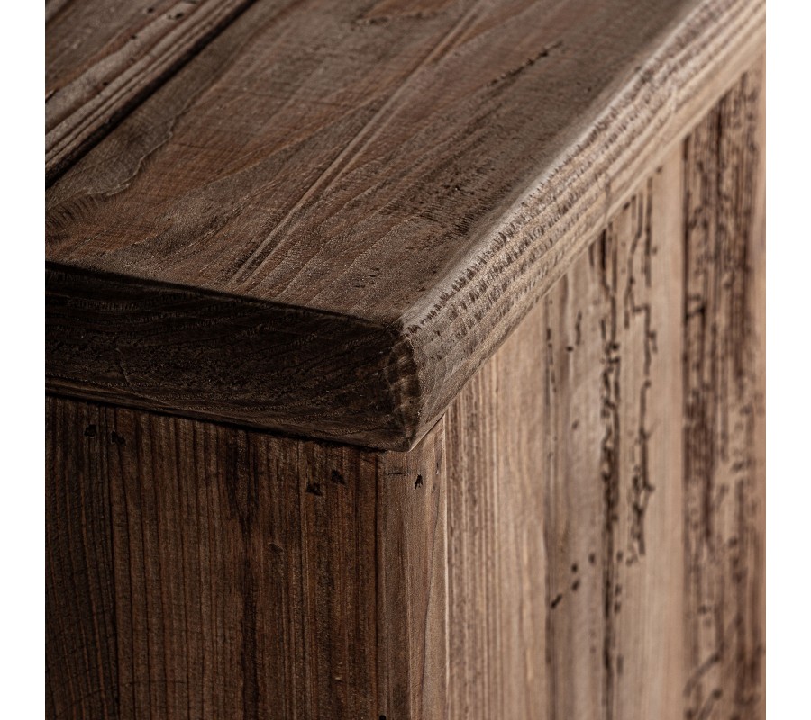 Luxusný rustikálny príborník Lilia je exkluzívny kus nábytku, ktorý v sebe spája autentickú prírodnú krásu, precízne remeselné spracovanie a vysokú kvalitu materiálov. Vyrobený z recyklovaného masívneho dreva, tento príborník nesie viditeľné štruktúry letokruhov, prírodné nepravidelnosti a sukovitosť dreva, ktoré mu dodávajú charakter a jedinečný rustikálny vzhľad.