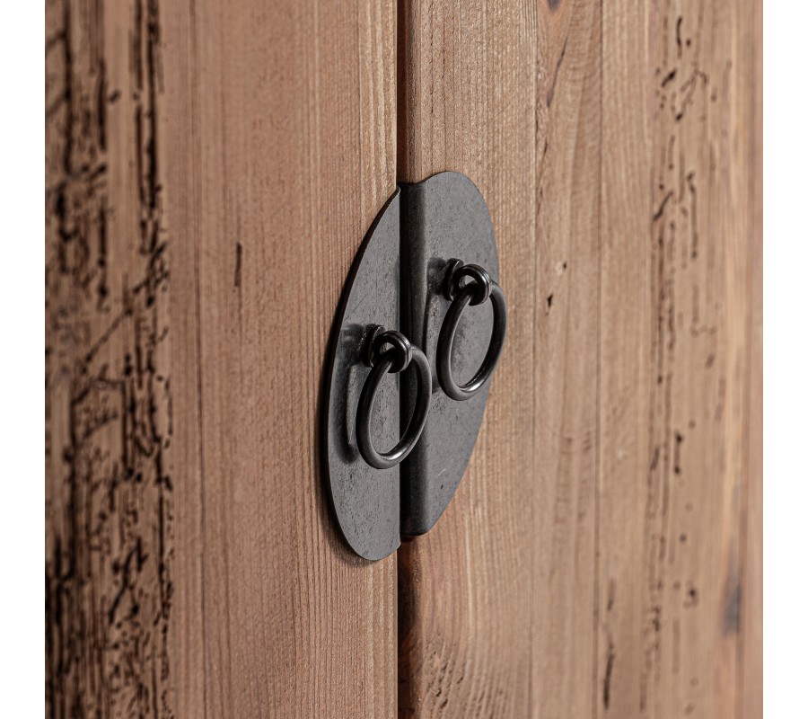 Vidiecky masívny hnedý štvordverový obdĺžnikový príborník Lilia s prírodným vzhľadom s kovovými visiacimi úchytkami 190 cm