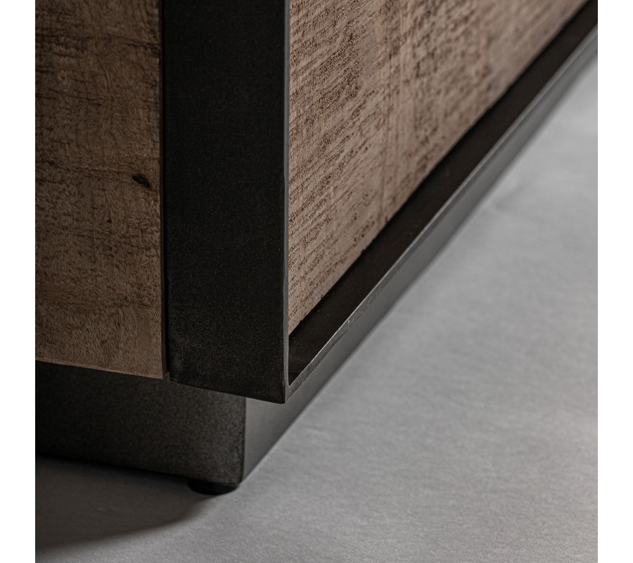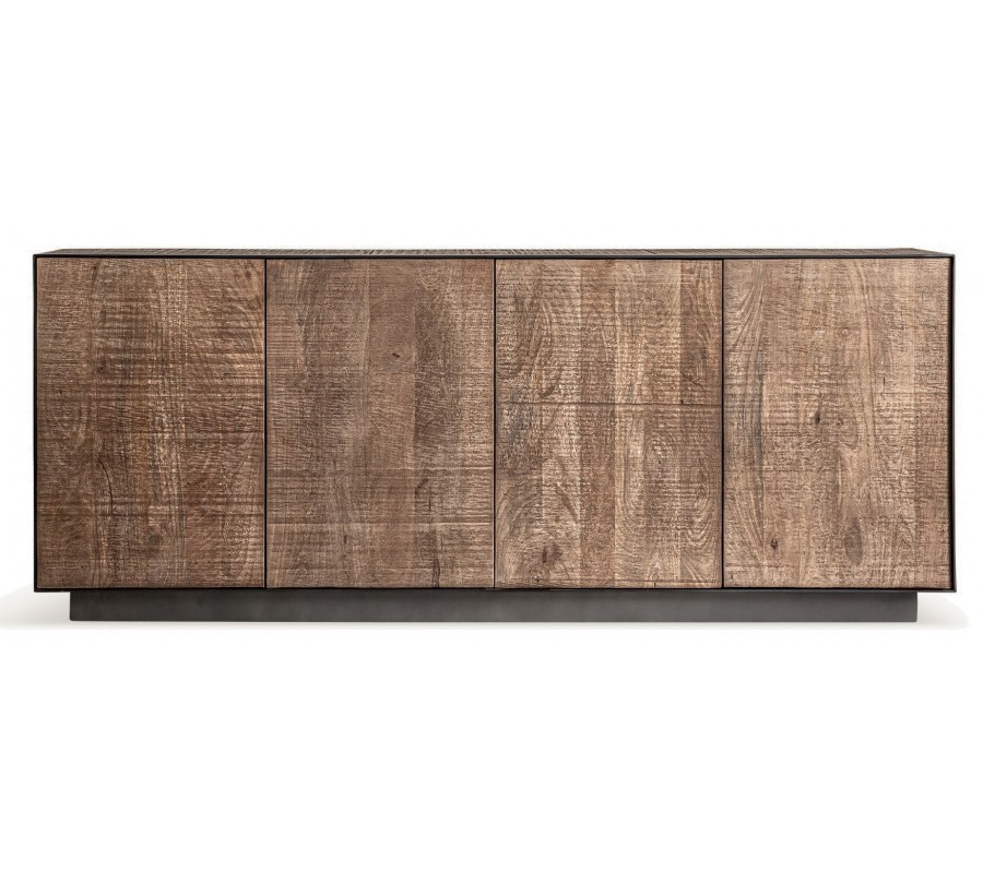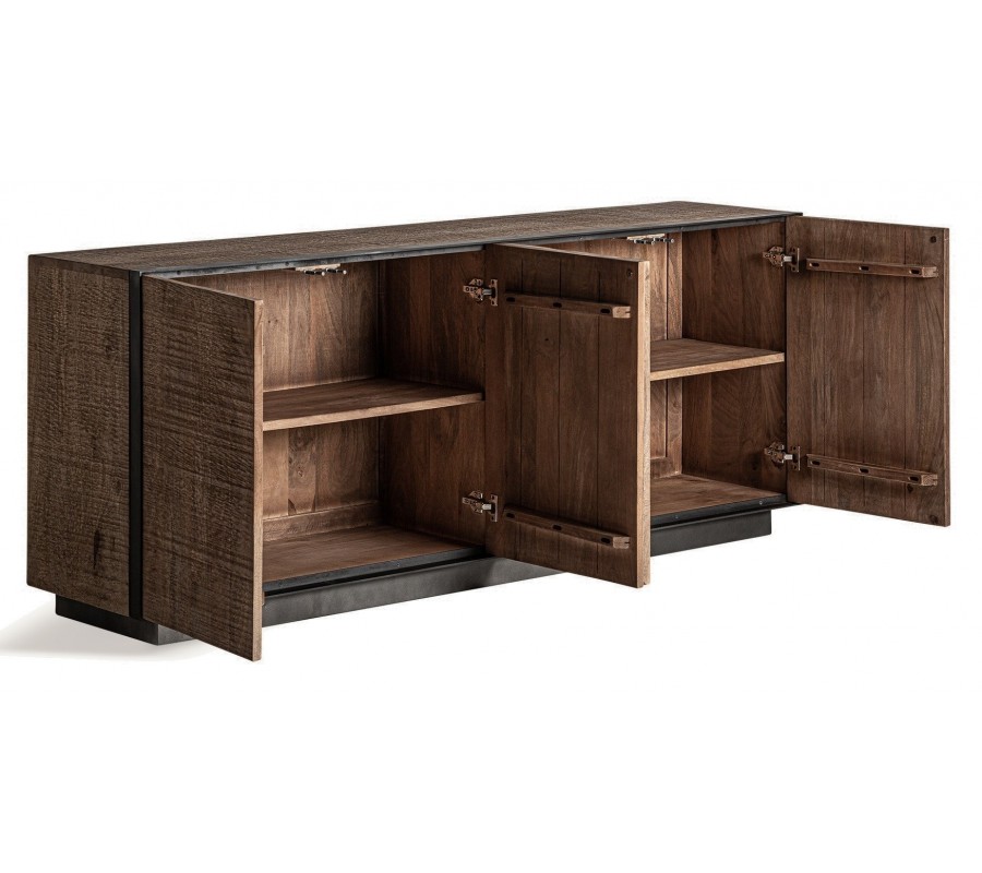 Luxusný moderný masívny štvordverový príborník Salinia s kovovou konštrukciou v hnedej farbe s dvomi poličkami 200 cm