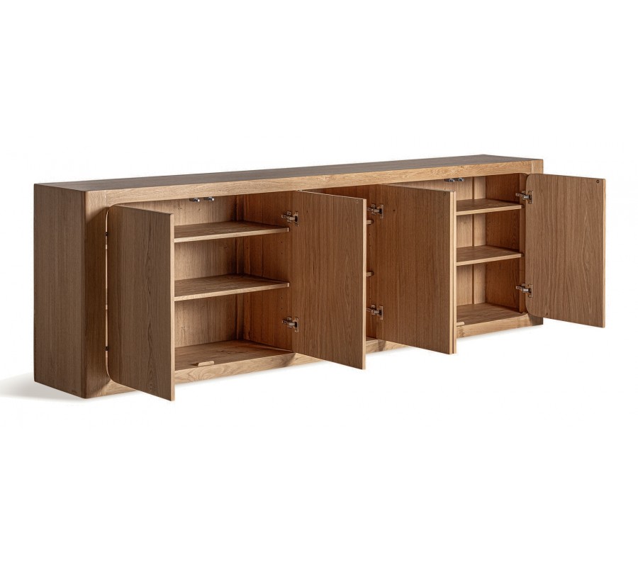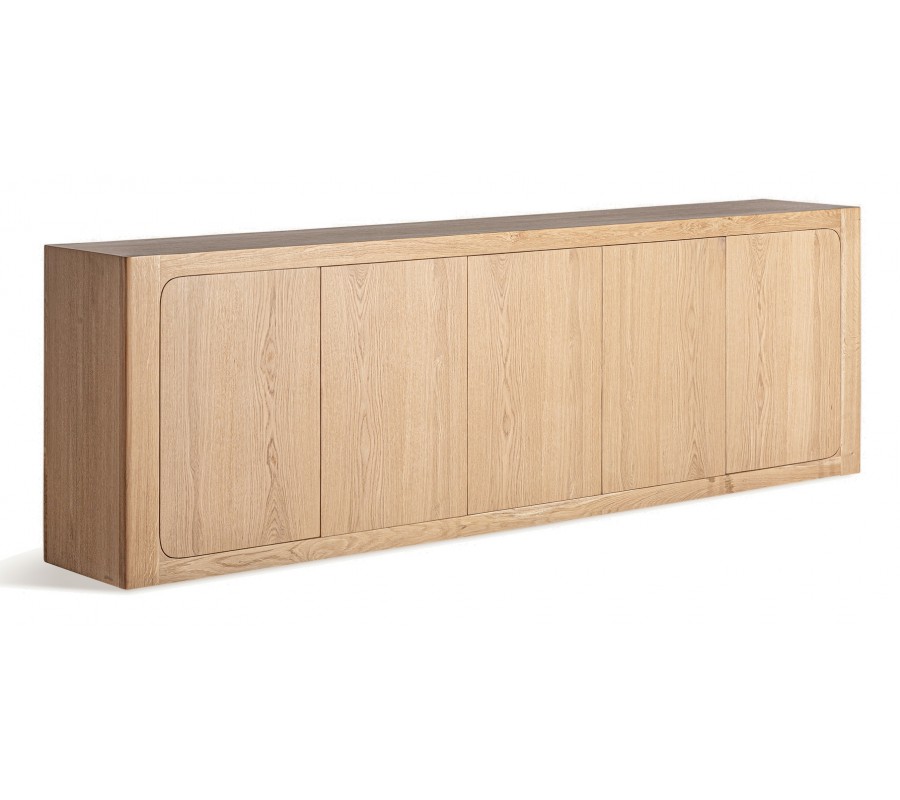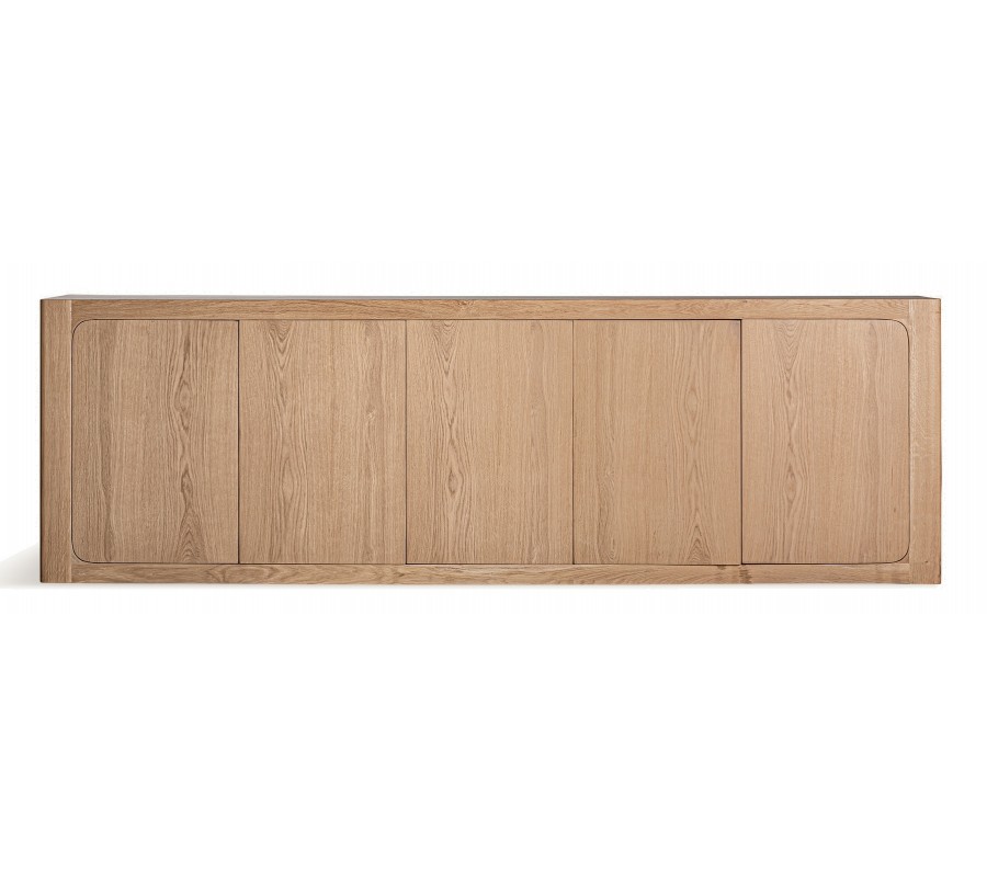 Luxusný moderný päťdvierkový masívny príborník Oakis so šiestimi poličkami v svetlej hnedej farbe 270 cm