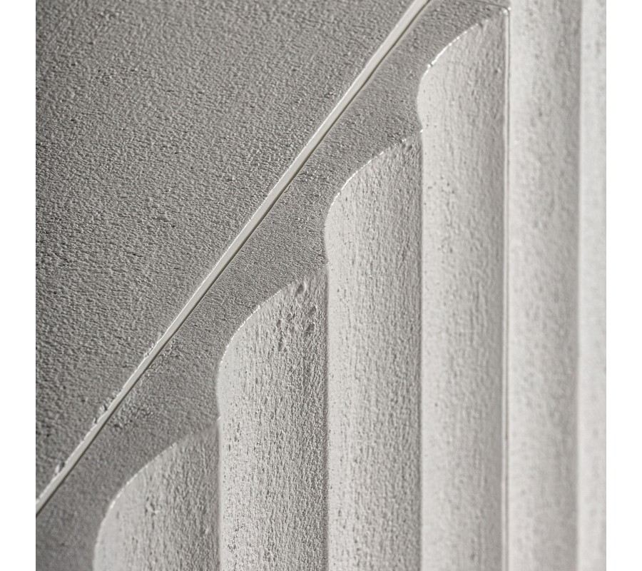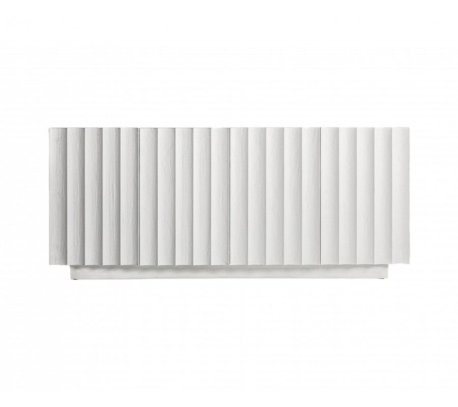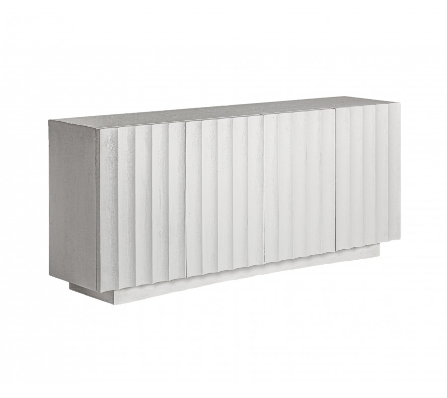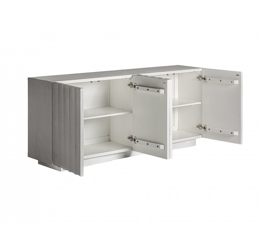 Luxusný art deco biely štvordverový príborník Zarina betónovým efektom s vrúbkovaným povrchom s dvomi poličkami 180 cm