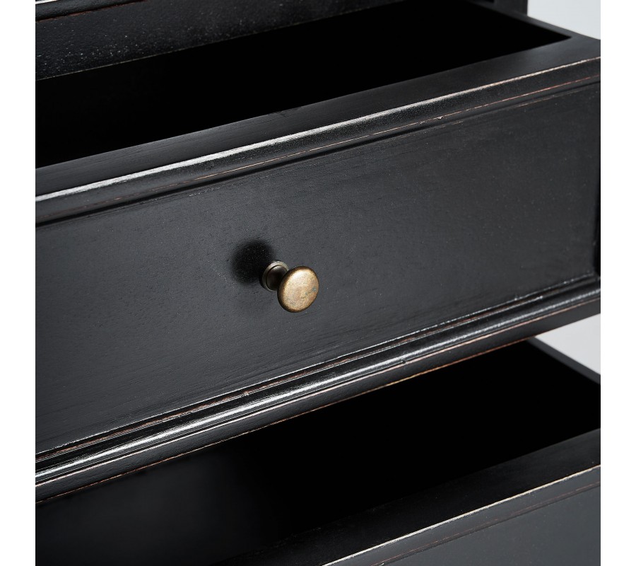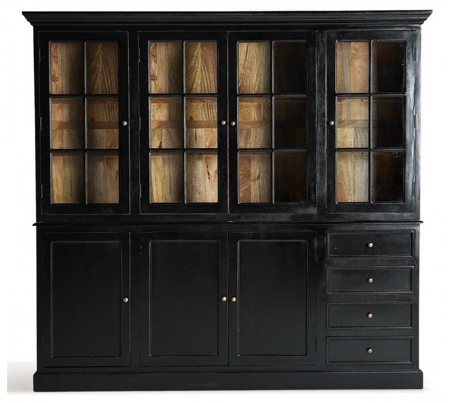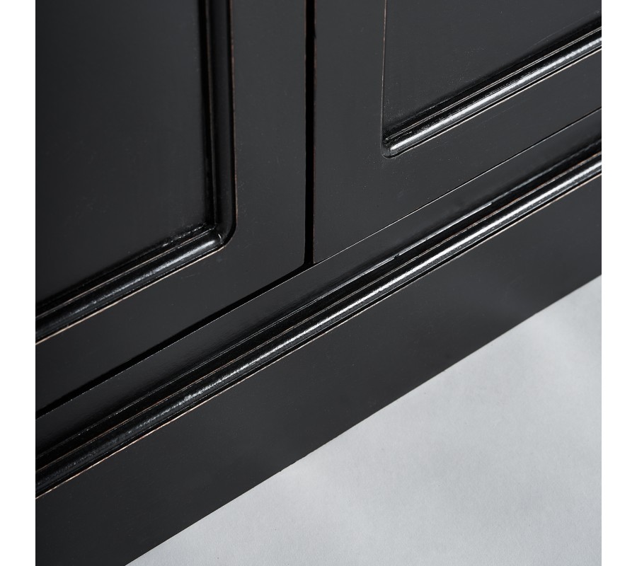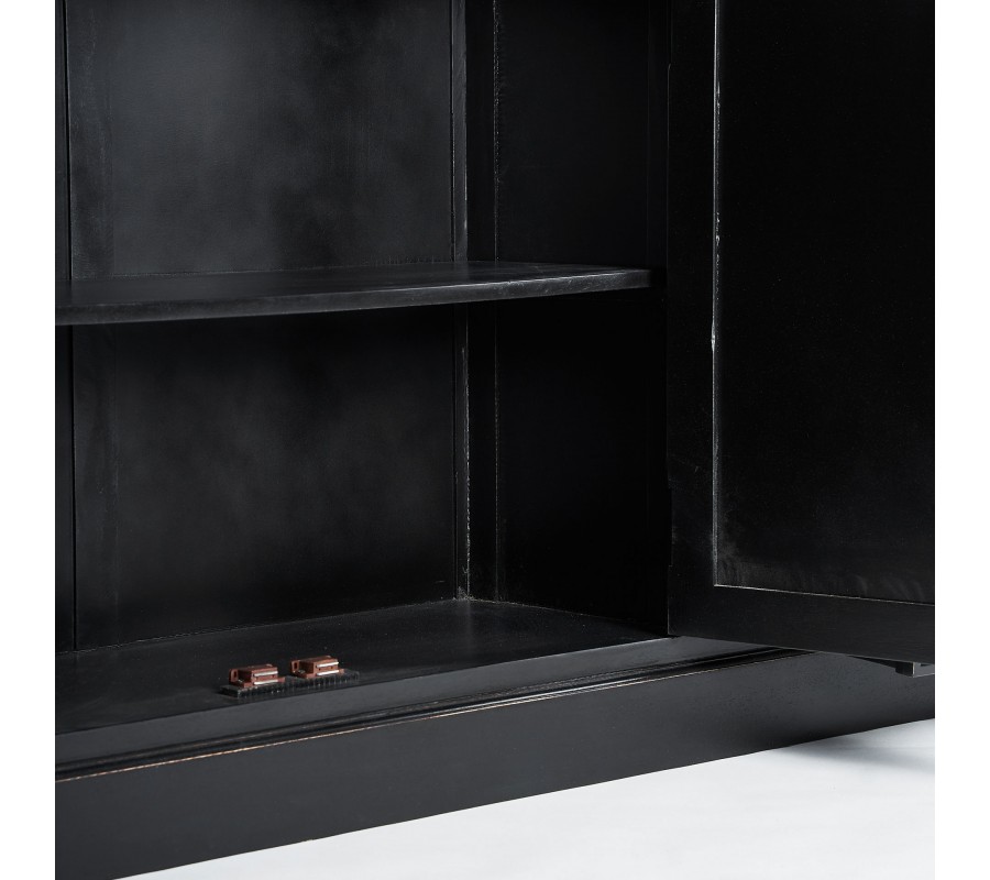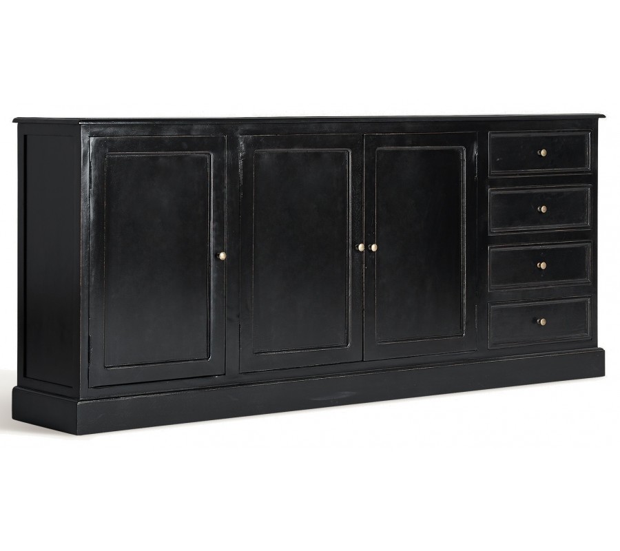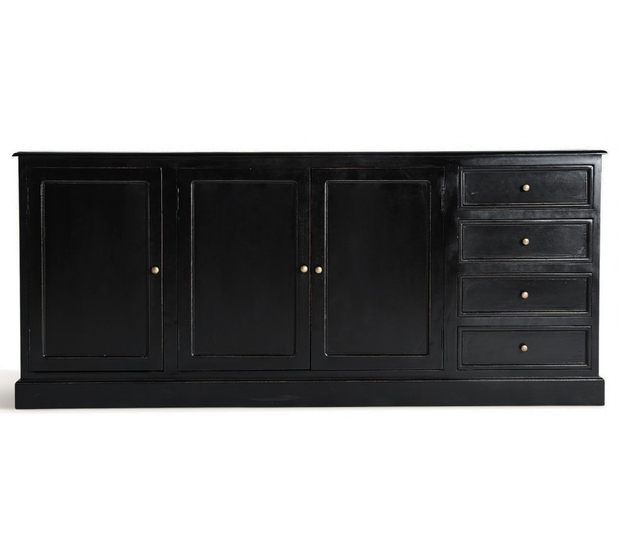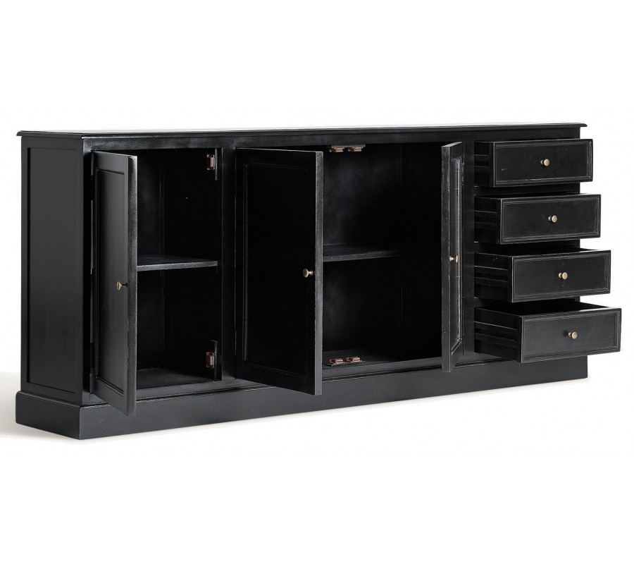 Luxusný vintage obdĺžnikový čierny príborník Zena Noir s tromi dvierkami a štyrmi zásuvkami z masívneho dreva 212 cm