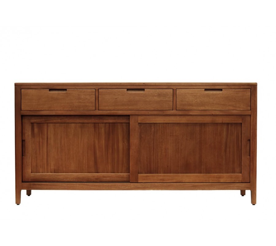 Luxusný koloniálny mahagónový hnedý príborník Liberia z masívneho dreva s dvomi posuvnými dvierkami a tromi zásuvkami 170 cm