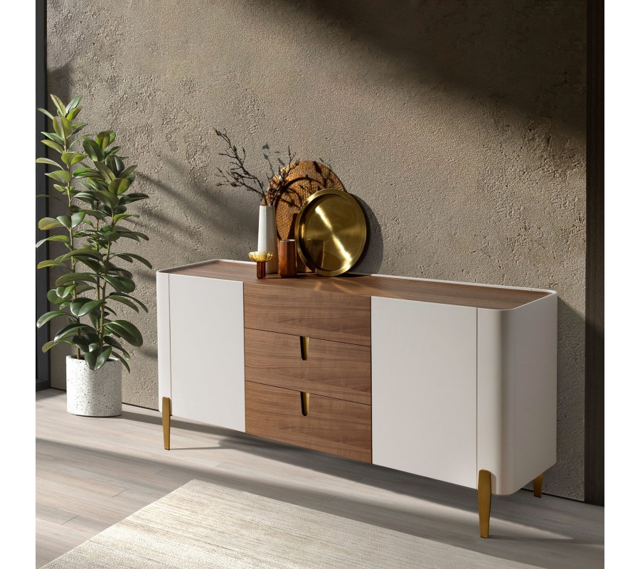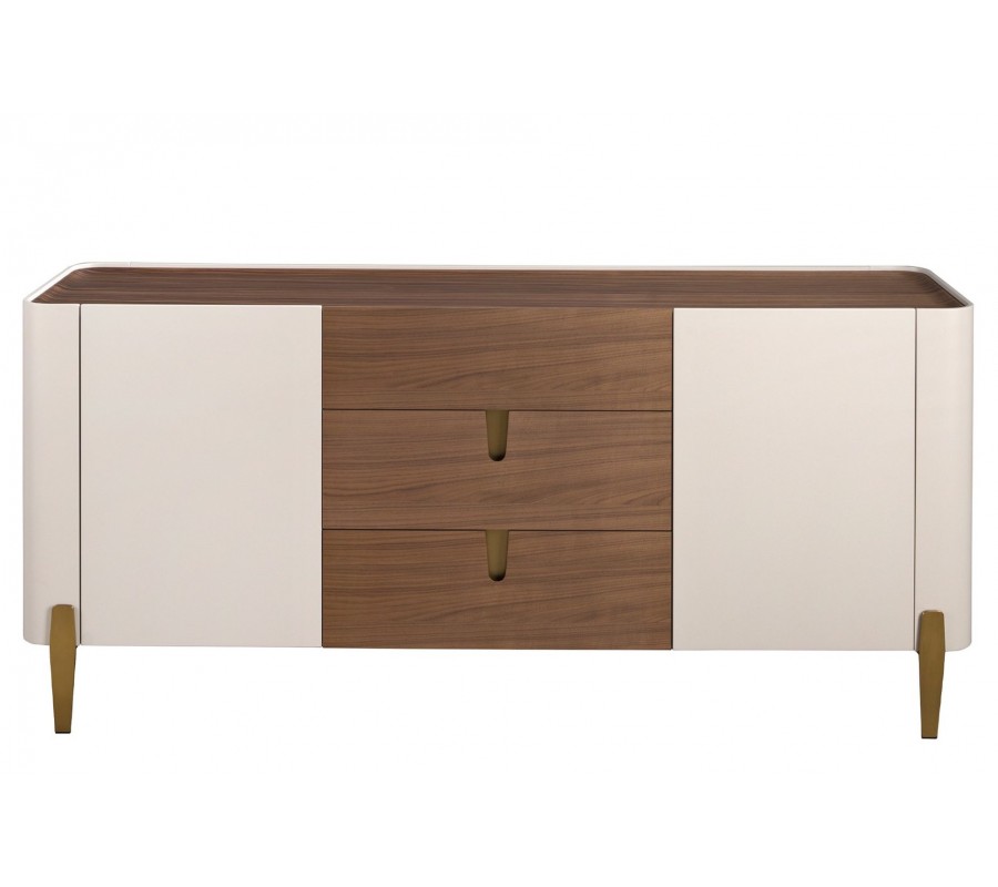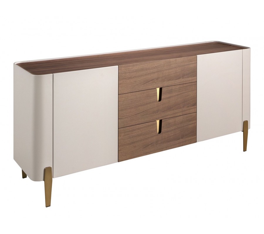 Luxusný moderný dvojdverový príborník Forma Moderna s tromi zásuvkami v hnedej a béžovej farbe so zlatými detailmi 180 cm