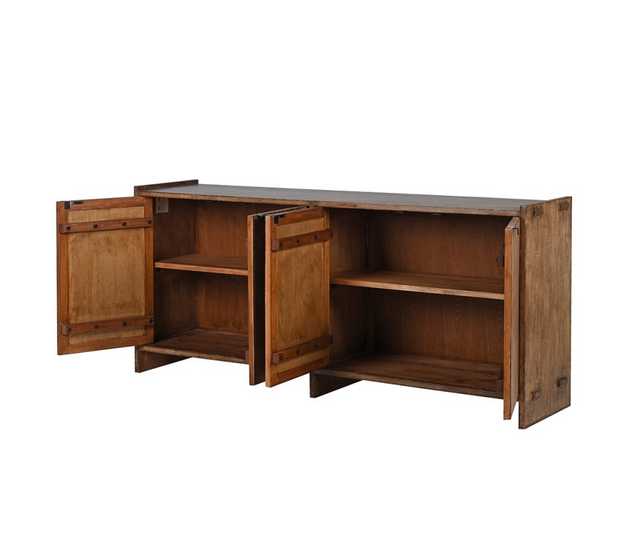 Luxusný vidiecky príborník Plymouth z masívneho recyklovaného dreva v naturálnej hnedej farbe so štyrmi dvierkami 200 cm