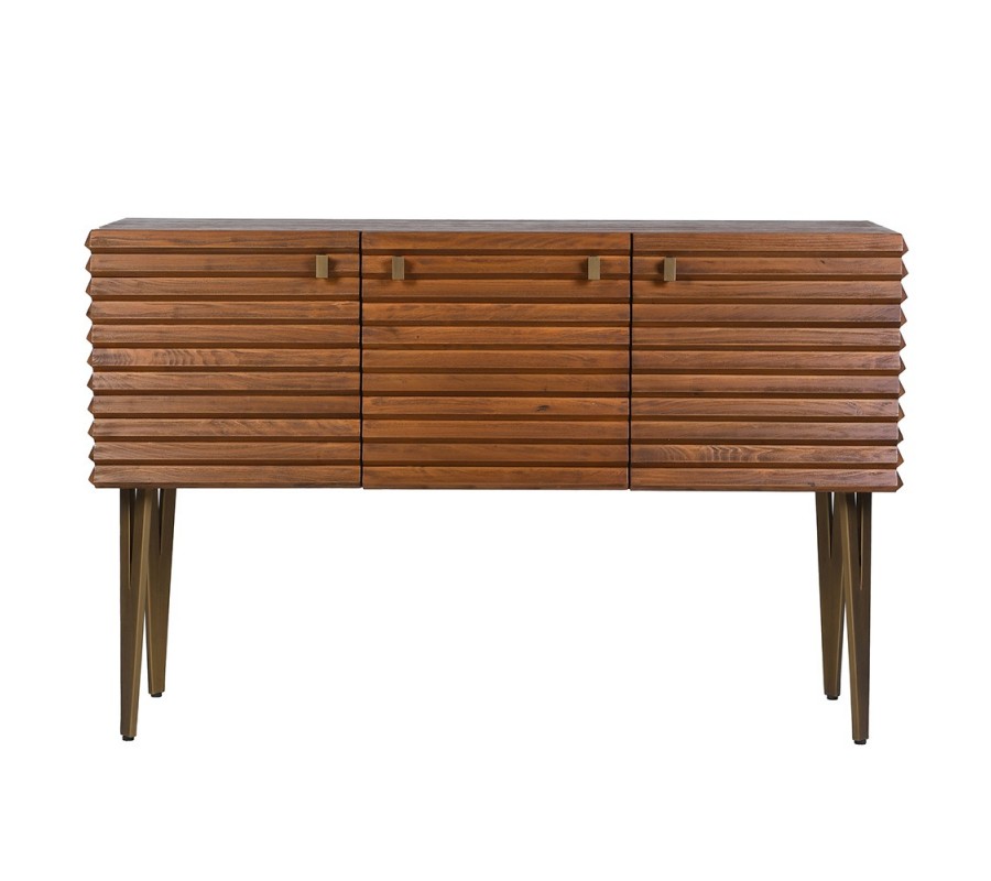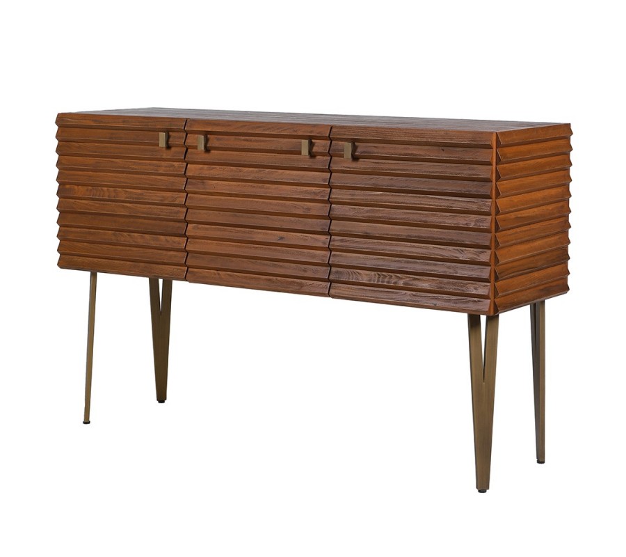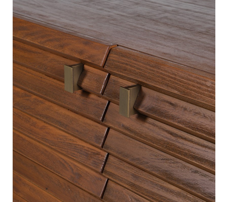 Retro luxusný obdĺžnikový masívny príborník Striata trojdverový z dreva s 3D lamelovým dizajnom v hnedej farbe 141 cm